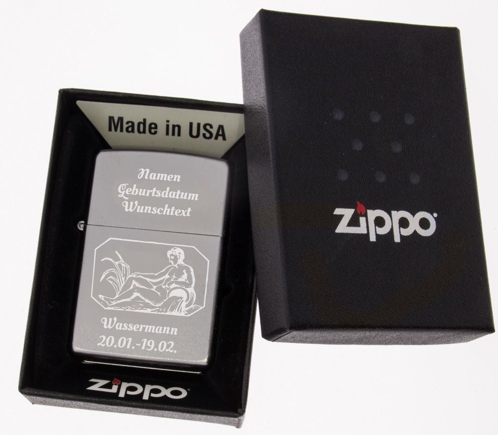 Zippo Zippo Feuerzeug Chrome Satin Wassermann