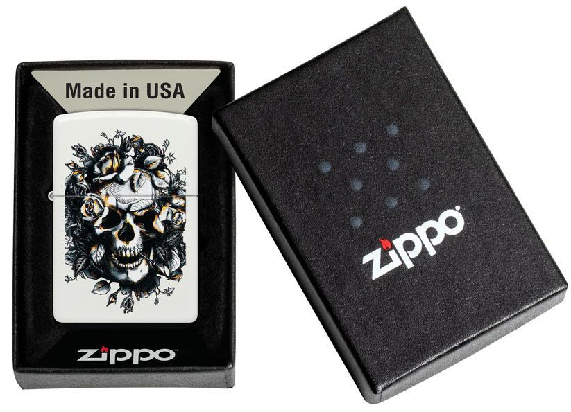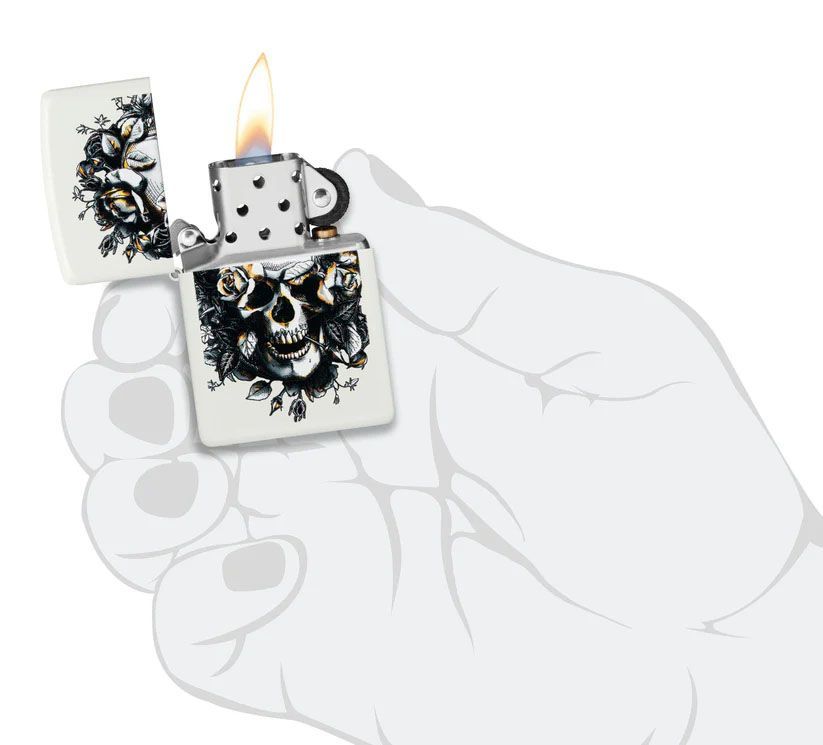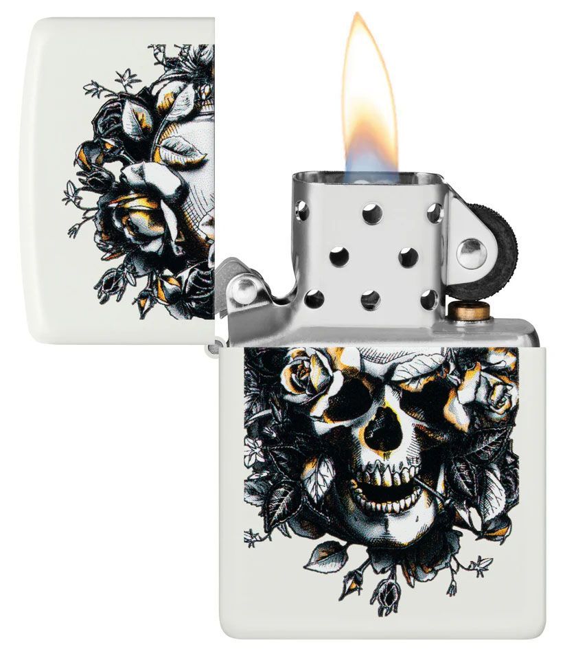 Zippo Zippo Feuerzeug Skull & Roses White Matte