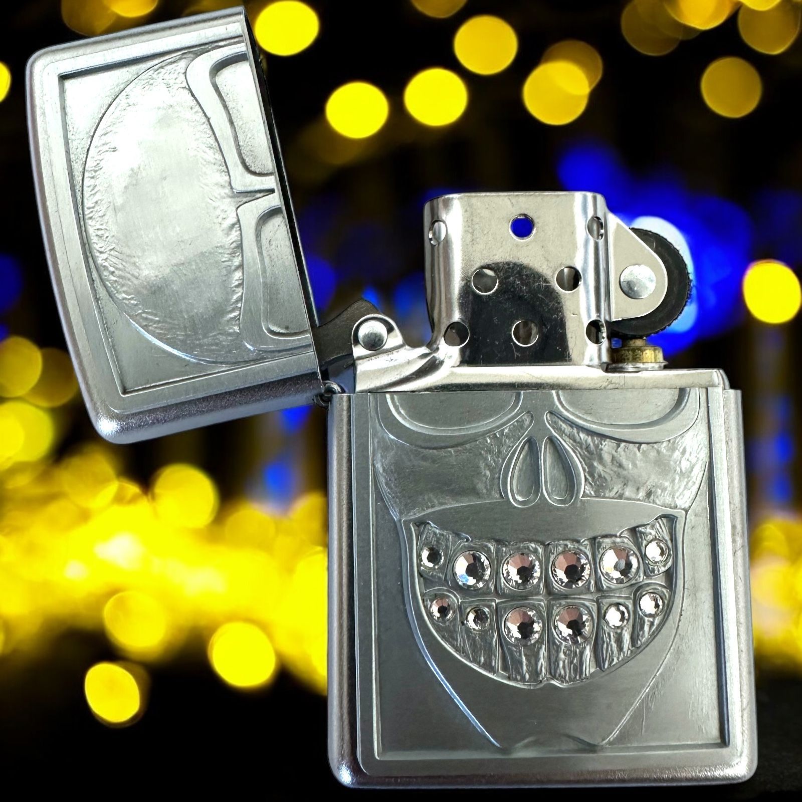 Zippo Zippo Feuerzeug Skull Smile Chrom mit glitzernden Zähnen – Sturmfeuerzeug