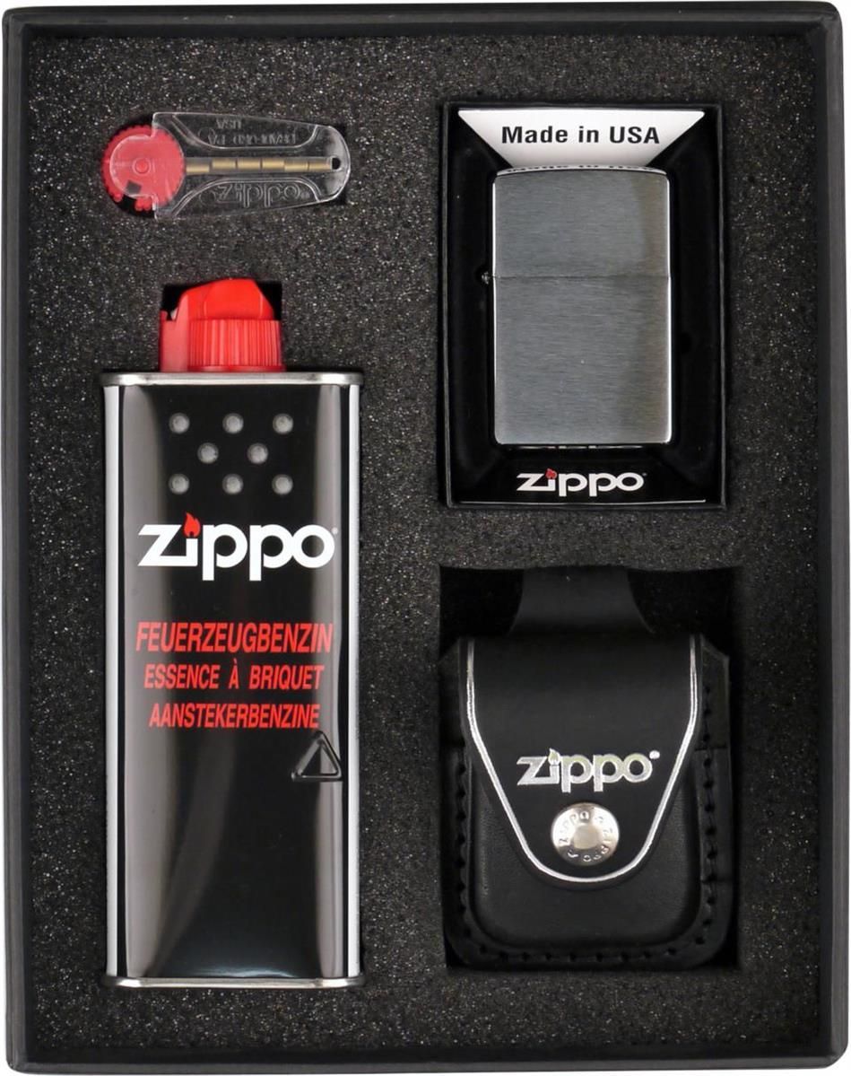 Zippo Zippo Geschenkset Chrom gebürstet mit Ledertasche