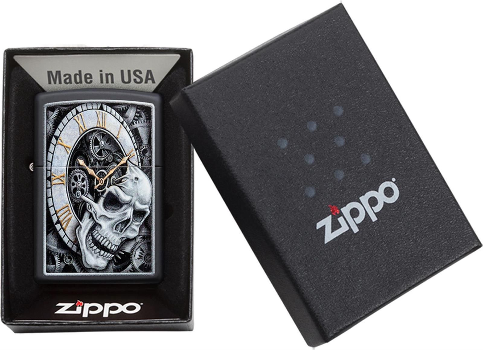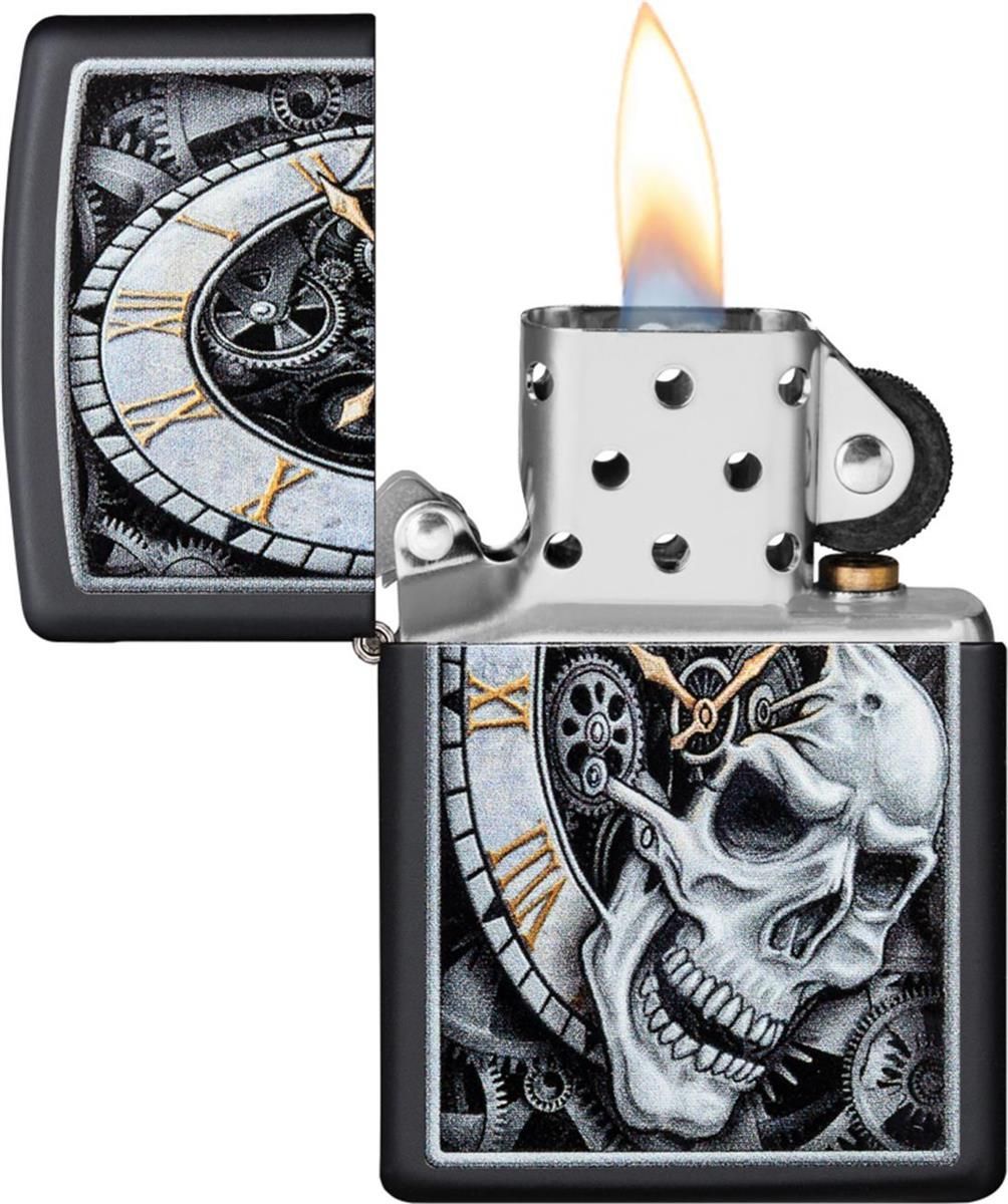 Zippo Zippo Totenkopf-Uhr 29854 | Schwarz Matte | Benzin Sturmfeuerzeug | Windfest