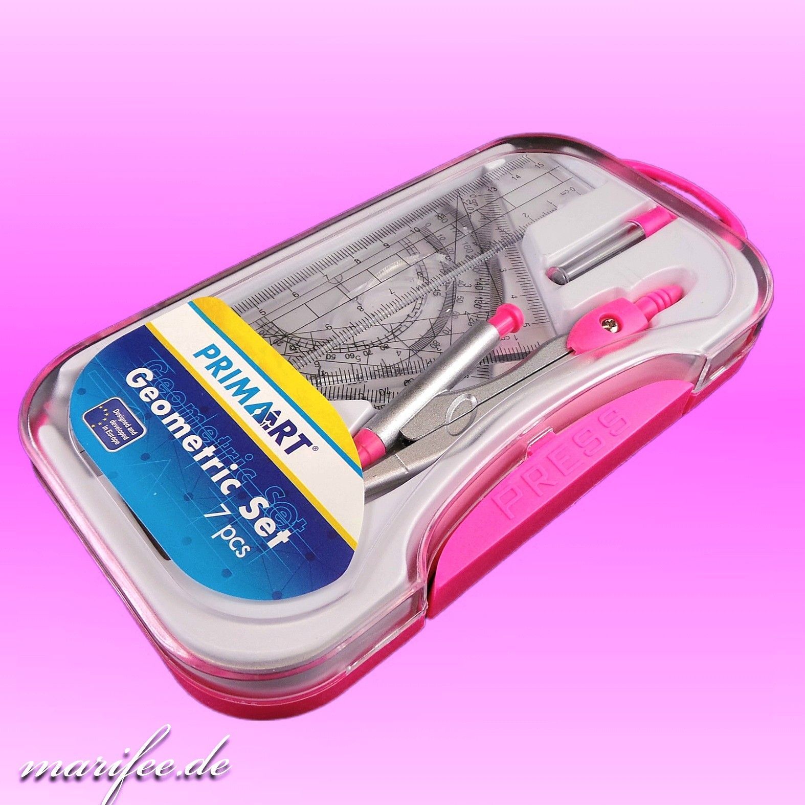 Zirkel & Geometrie-Set, 7-teilig, mit Zirkel und Winkelmesser, Rosa, Art.-Nr. 12311