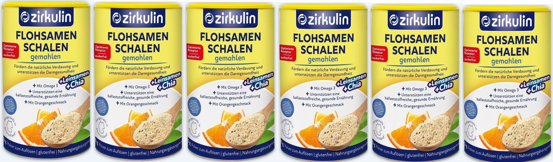Zirkulin Flohsamenschalen Omega 3 + Leinsamen + Chia Orangengeschmack 6Stk(6x200g)