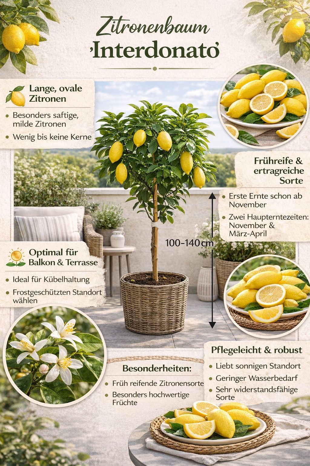 Zitronenbaum 'Interdonato' 100-140cm - Echter Zitronenbaum für Terrasse & Balkon