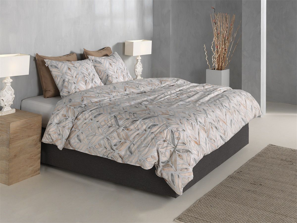 Zo! Home Cotton Bettwäsche 135x200 Lupe Naturel Blätter Ornamente grau sand