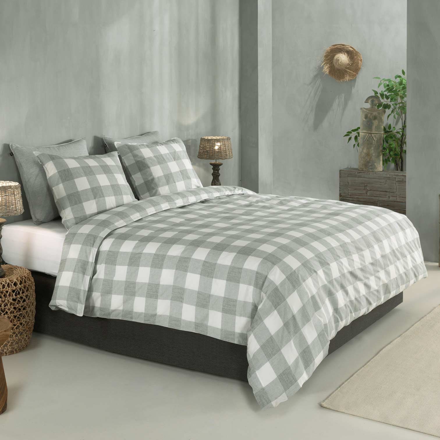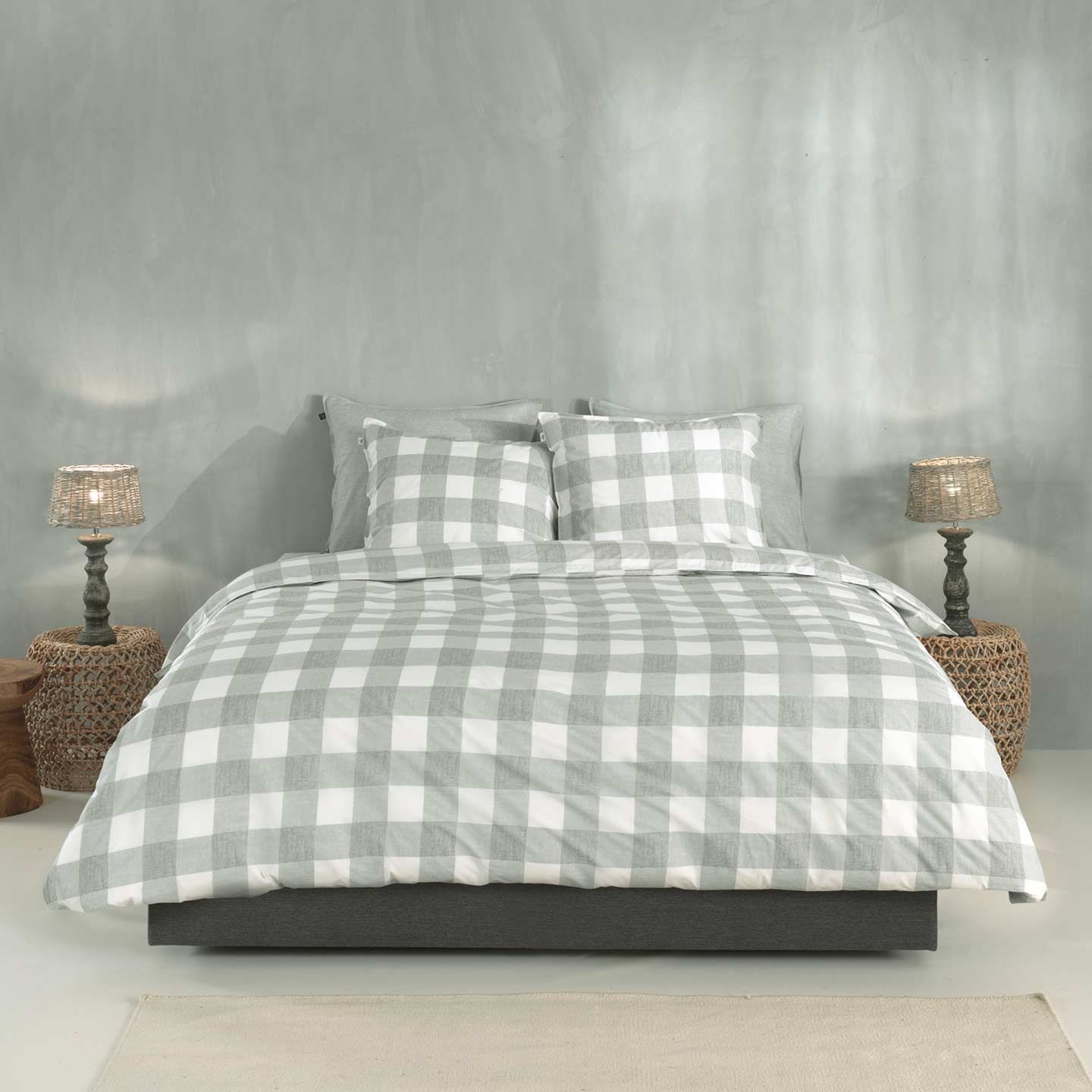 Zo! Home Cotton Bettwäsche 155x220 Quattro di Lino Dove Grey grau weiß kariert