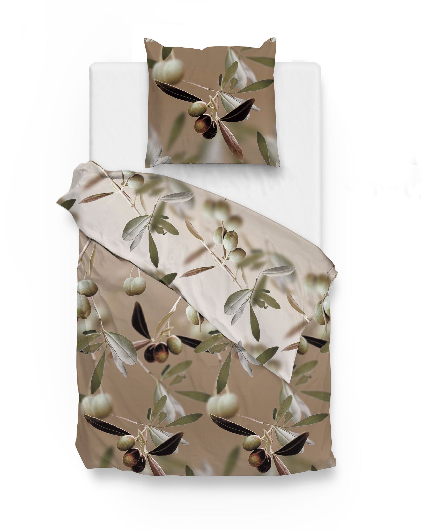 Zo! Home Mako-Satin Bettwäsche 135x200 Mylie natural Oliven Blätter Wende