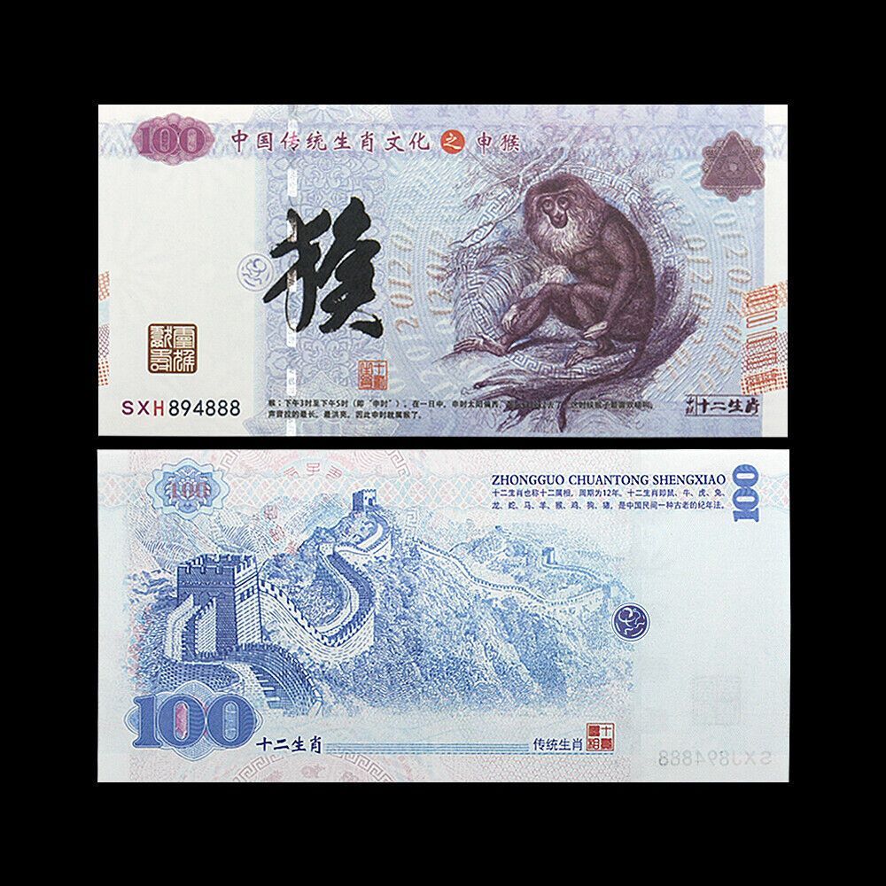 Zodiac Affe 100 Yuan Banknoten Währung Papiergeld Kunsthandwerk (ZD1010)