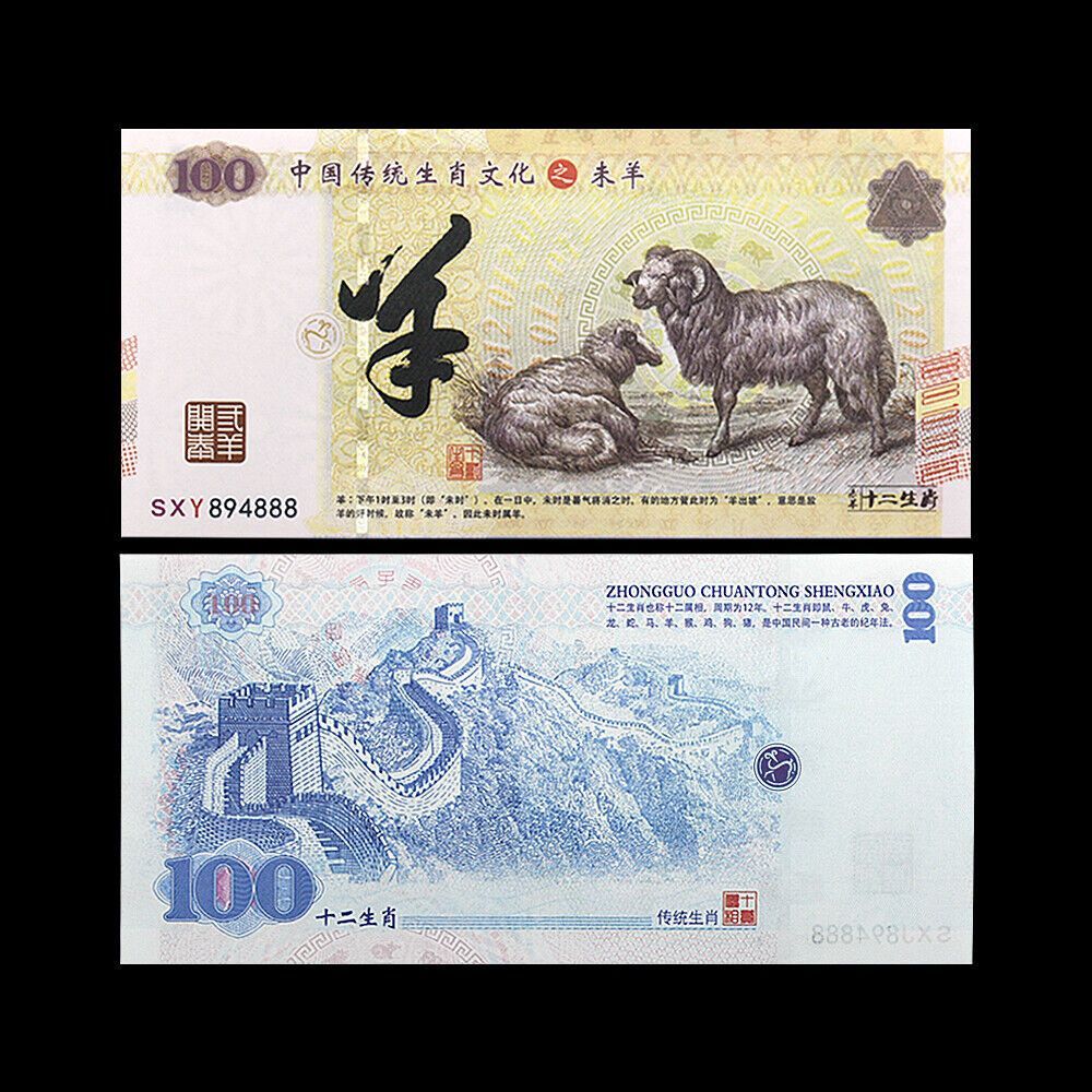 Zodiac Schaf 100 Yuan Banknoten Währung Papiergeld Kunsthandwerk (ZD116)