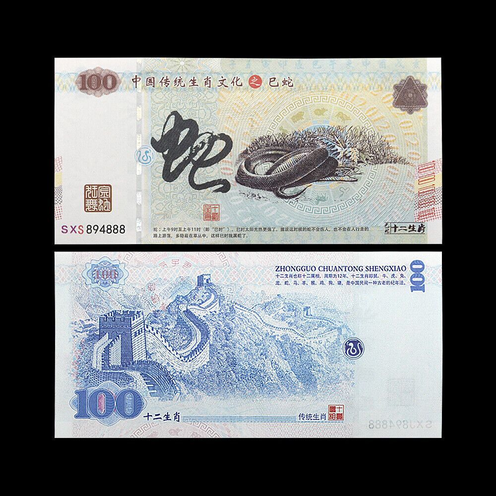 Zodiac Schlange 100 Yuan Banknoten Währung Papiergeld Kunsthandwerk (ZD111)