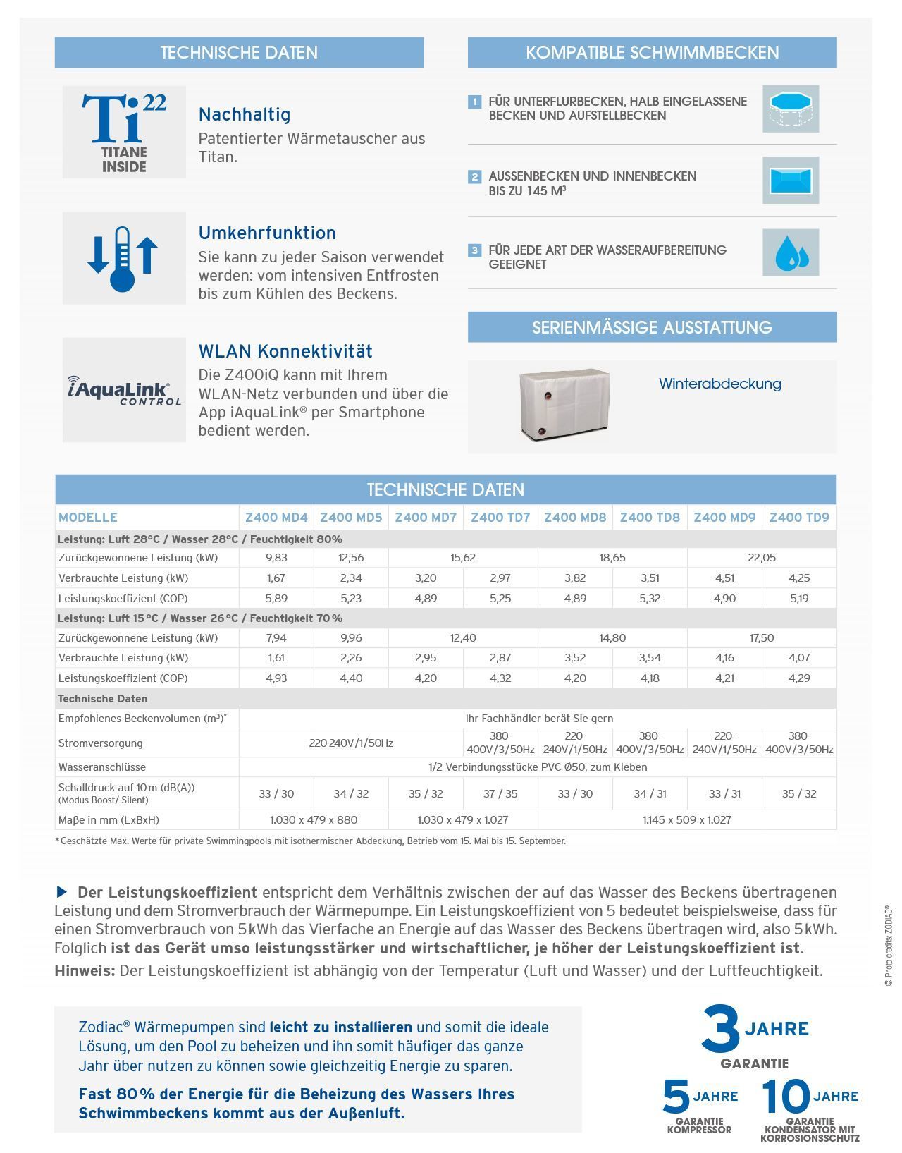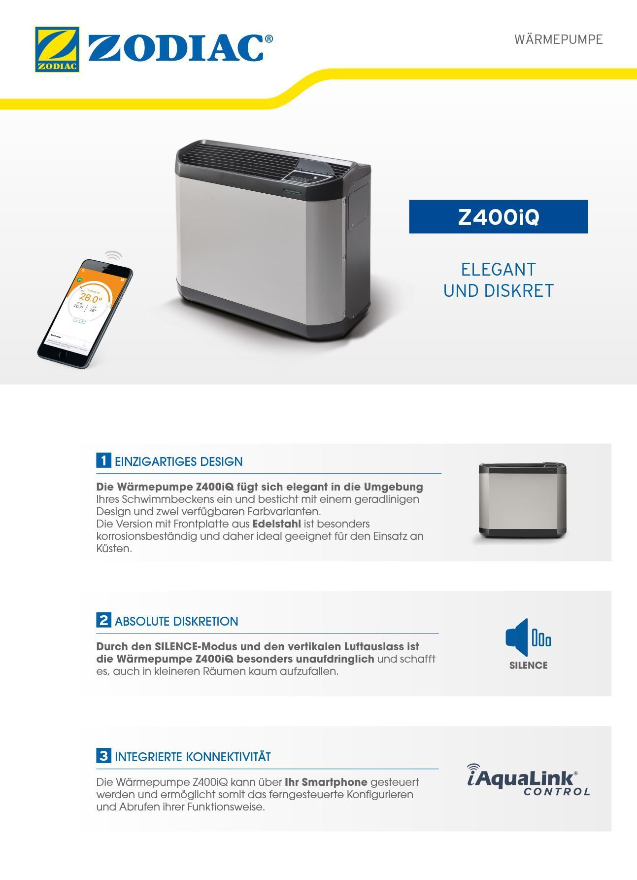 Die Zodiac Z400 iQ Wärmepumpe – Leise, effizient & smart! WLAN-Steuerung per App, SILENCE-Modus für geräuscharmen Betrieb & Titan-Wärmetauscher für höchste Langlebigkeit. Perfekt für Pools bis 145 m³! Jetzt entdecken! ??