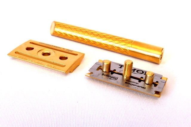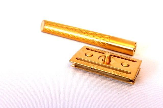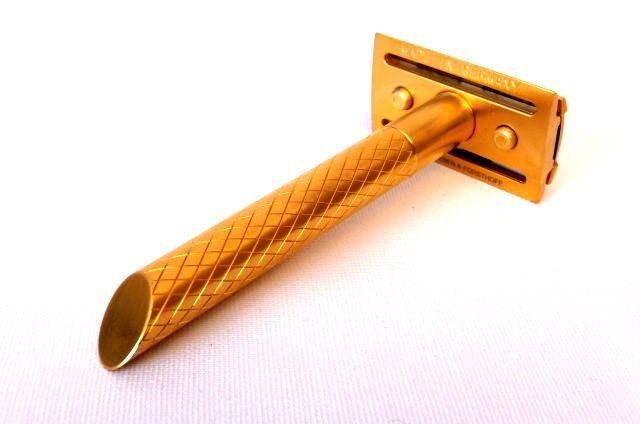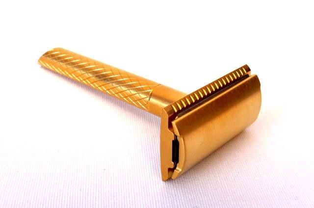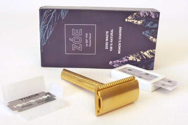 ZÓE Frauenrasierer, geschlossener Kamm, hochwertige matte Vergoldung + 10 Klingen