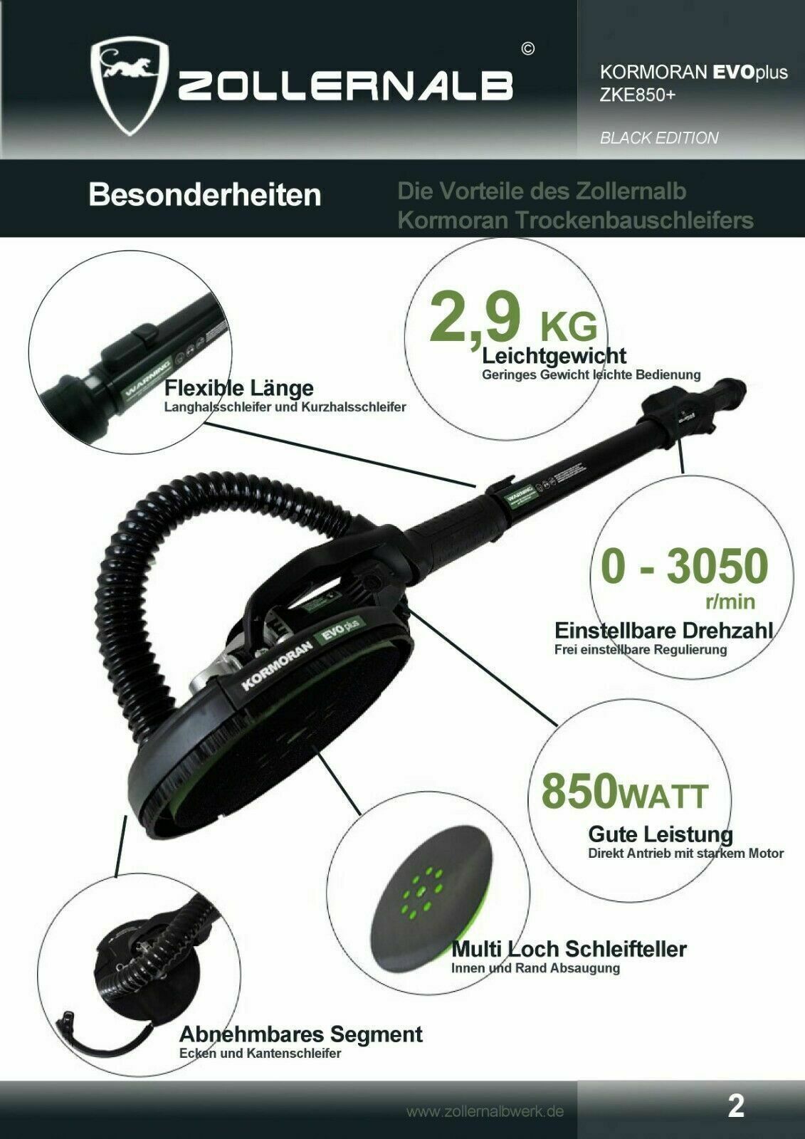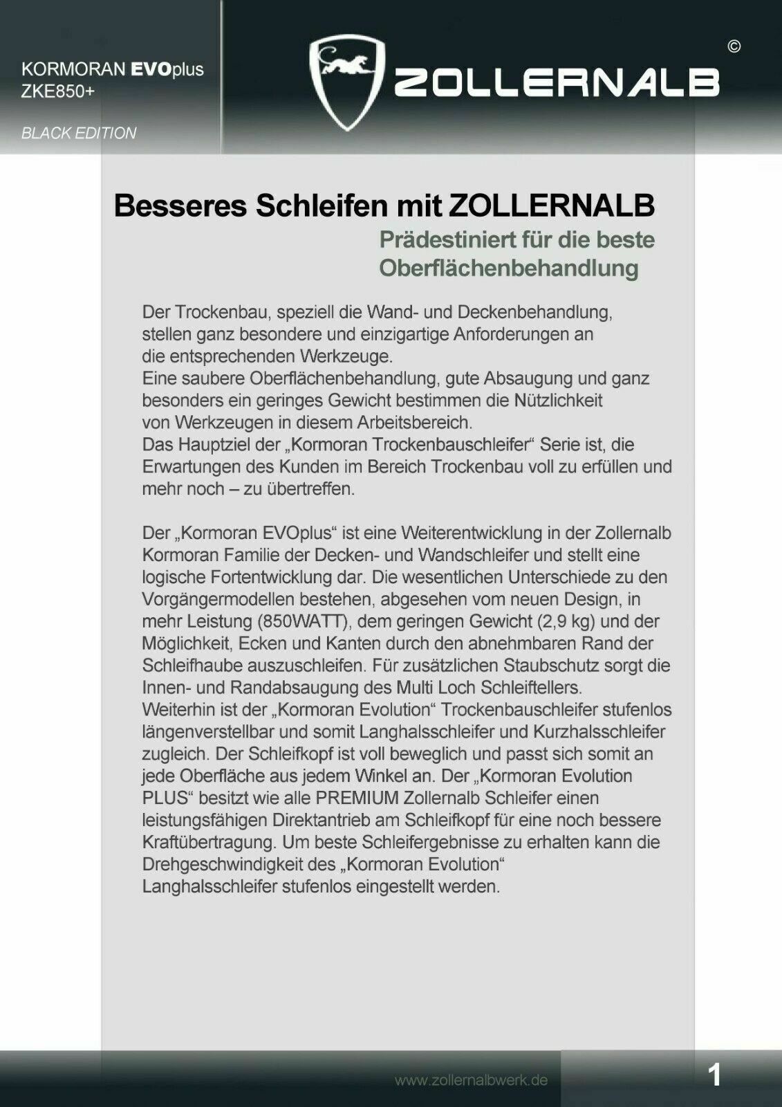 Zollernalb + Bosch SET Angebot - Kormoran EVO+ Plus ZKE850+ Trockenbauschleifer