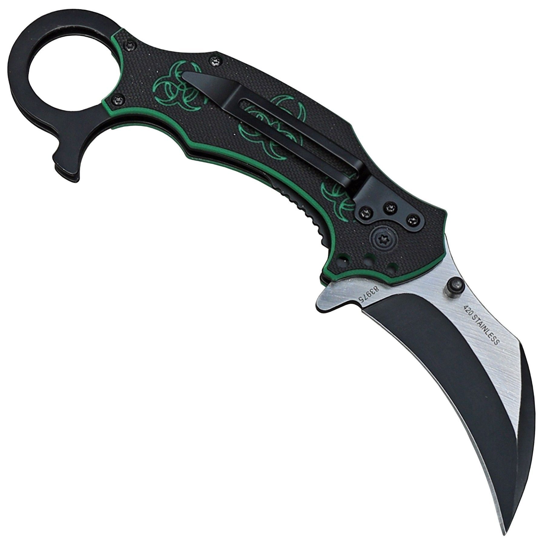 Haller Zombie Dead Karambit Taschenmesser federunterstützt mit Gürtelclip (18 + )