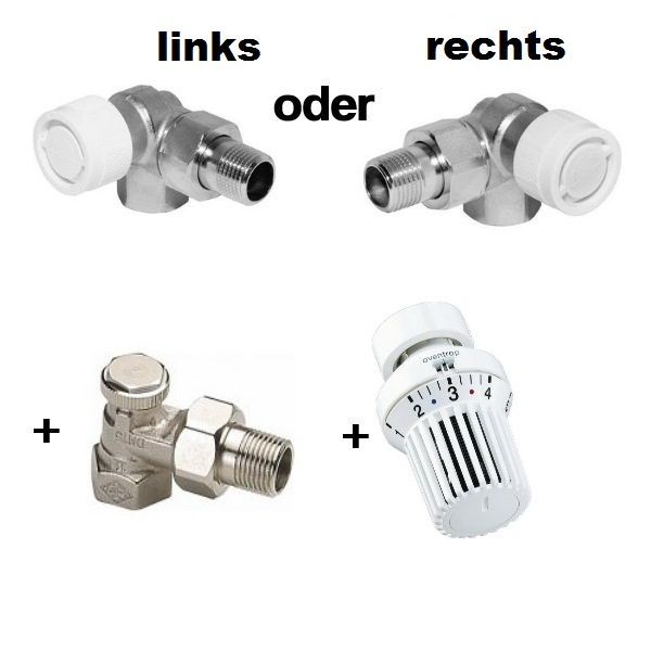 Oventrop links, Oventrop rechts, Danfoss links und Danfoss rechts