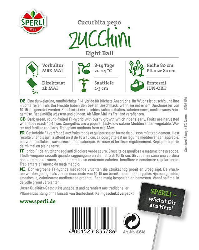 Sperli Zucchini Eight Ball, F1, durch die robuste Wuchskraft wird ein gleichmässiger