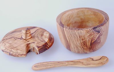Zuckerdose Salzdose Zuckertopf Dose Topf aus Olivenholz mit Löffel Schaufel Holz