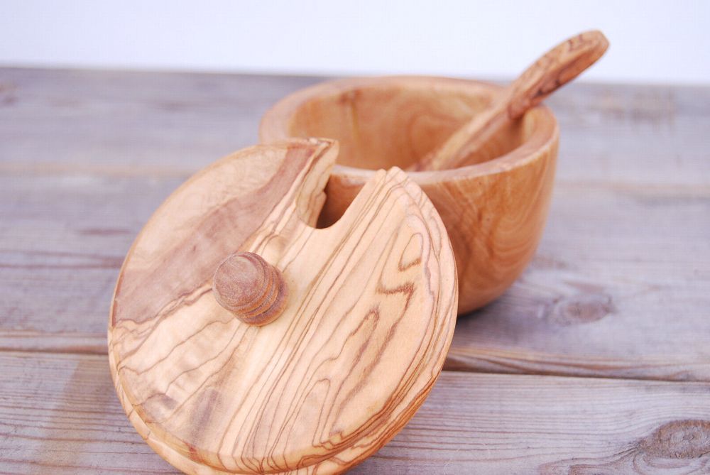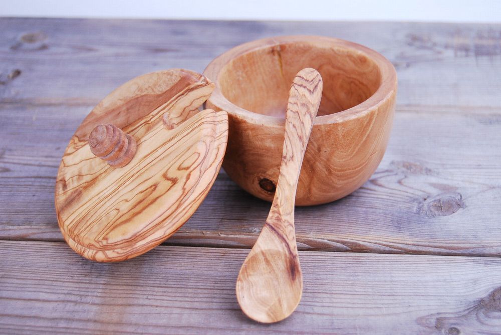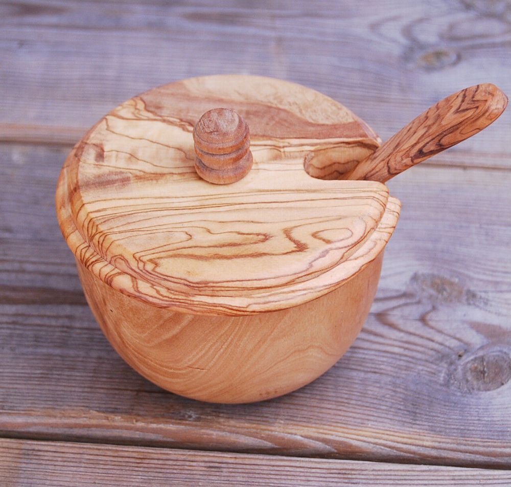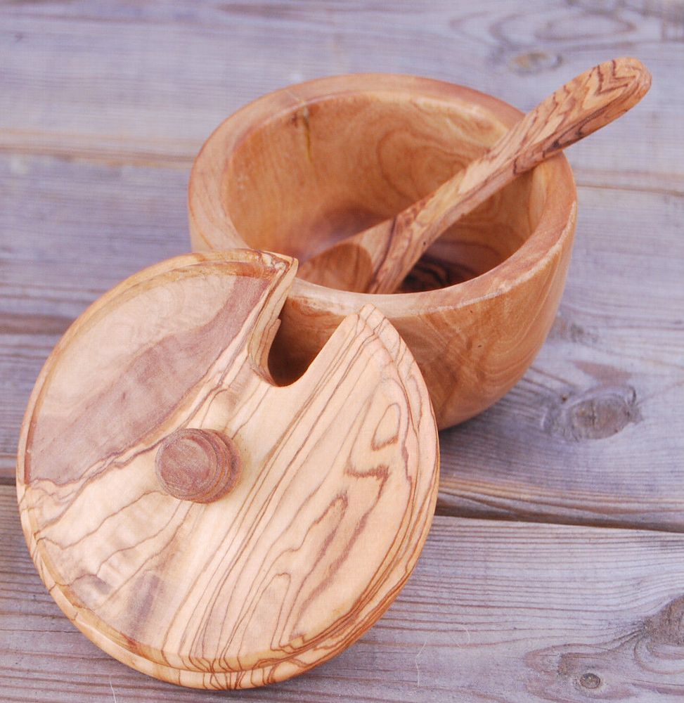 Zuckerdose Salzdose Zuckertopf Dose Topf aus Olivenholz mit Löffel Schaufel Holz