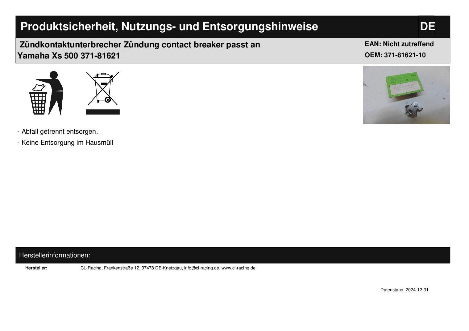 Zündkontaktunterbrecher Zündung contact breaker passt an Yamaha Xs 500 371-81621