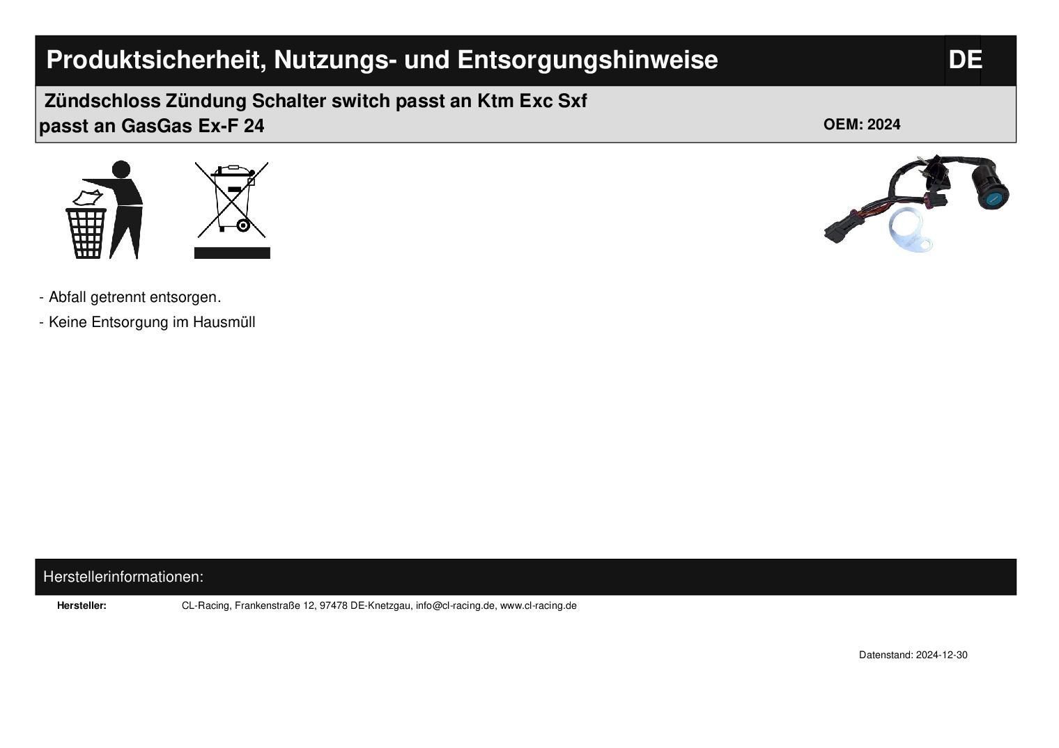 Zündschloss Zündung Schalter switch passt an Ktm Exc Sxf passt an GasGas Ex-F