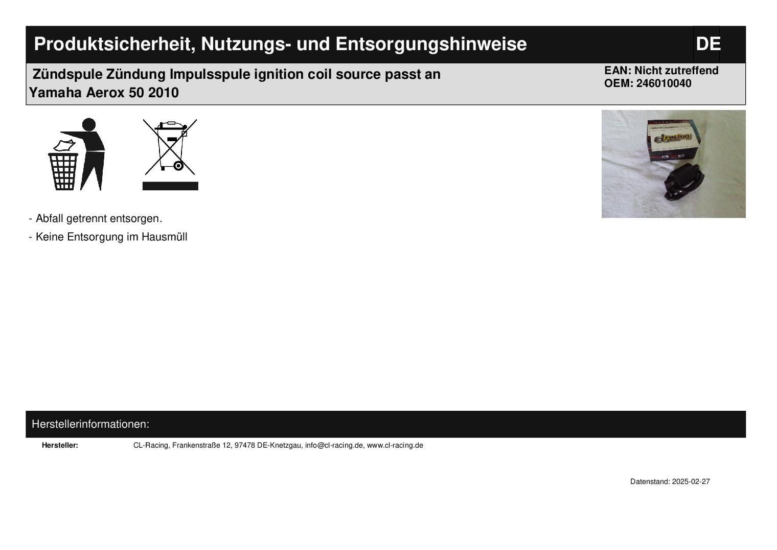 Zündspule Zündung Impulsspule ignition coil source passt an Yamaha Aerox 50 2010 In dieser Auktion gibt es folgenden Artikel zu kaufen: Zündspule (siehe Foto) Hersteller: RMS Modell: passend für Yamaha Aerox 50 Bj.: 2010 Lieferumfang: siehe Foto Artikelzustand: neu aus Geschäftsauflösung, mit leicht