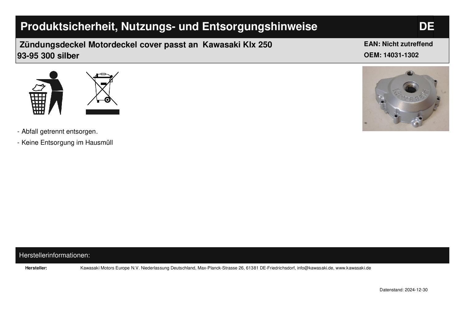 Zündungsdeckel Motordeckel cover passt an Kawasaki Klx 250 93-95 300 silber