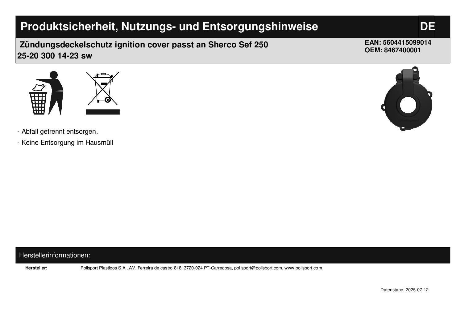 Polisport Zündungsdeckelschutz ignition cover passt an Sherco Sef 250 25-20 300 14-23 sw