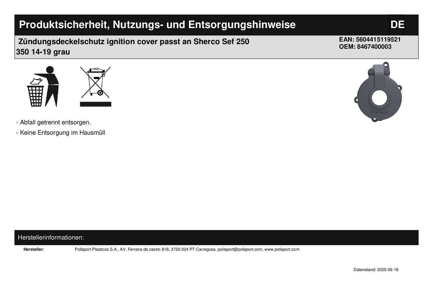 Polisport Zündungsdeckelschutz ignition cover passt an Sherco Sef 250 350 14-19 grau