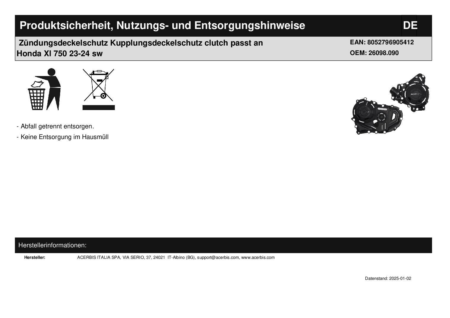 Acerbis Zündungsdeckelschutz Kupplungsdeckelschutz clutch passt an Honda Xl 750 23-25 sw