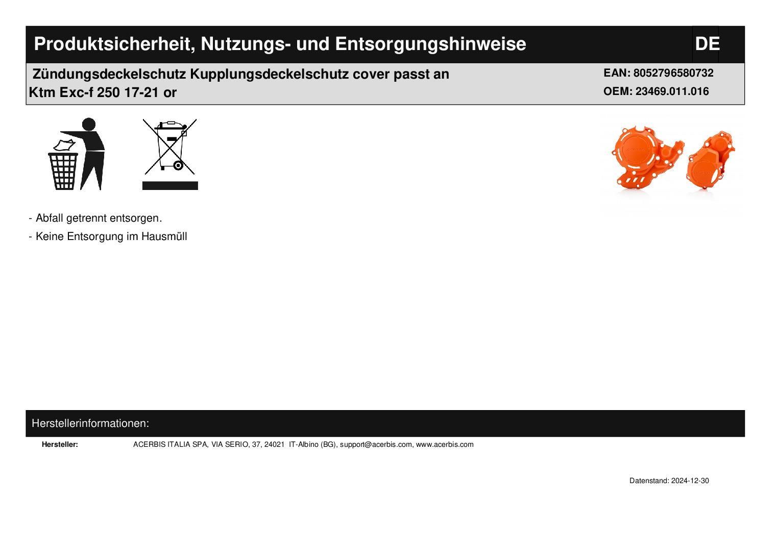 Acerbis Zündungsdeckelschutz Kupplungsdeckelschutz cover passt an Ktm Exc-f 250 17-21 or
