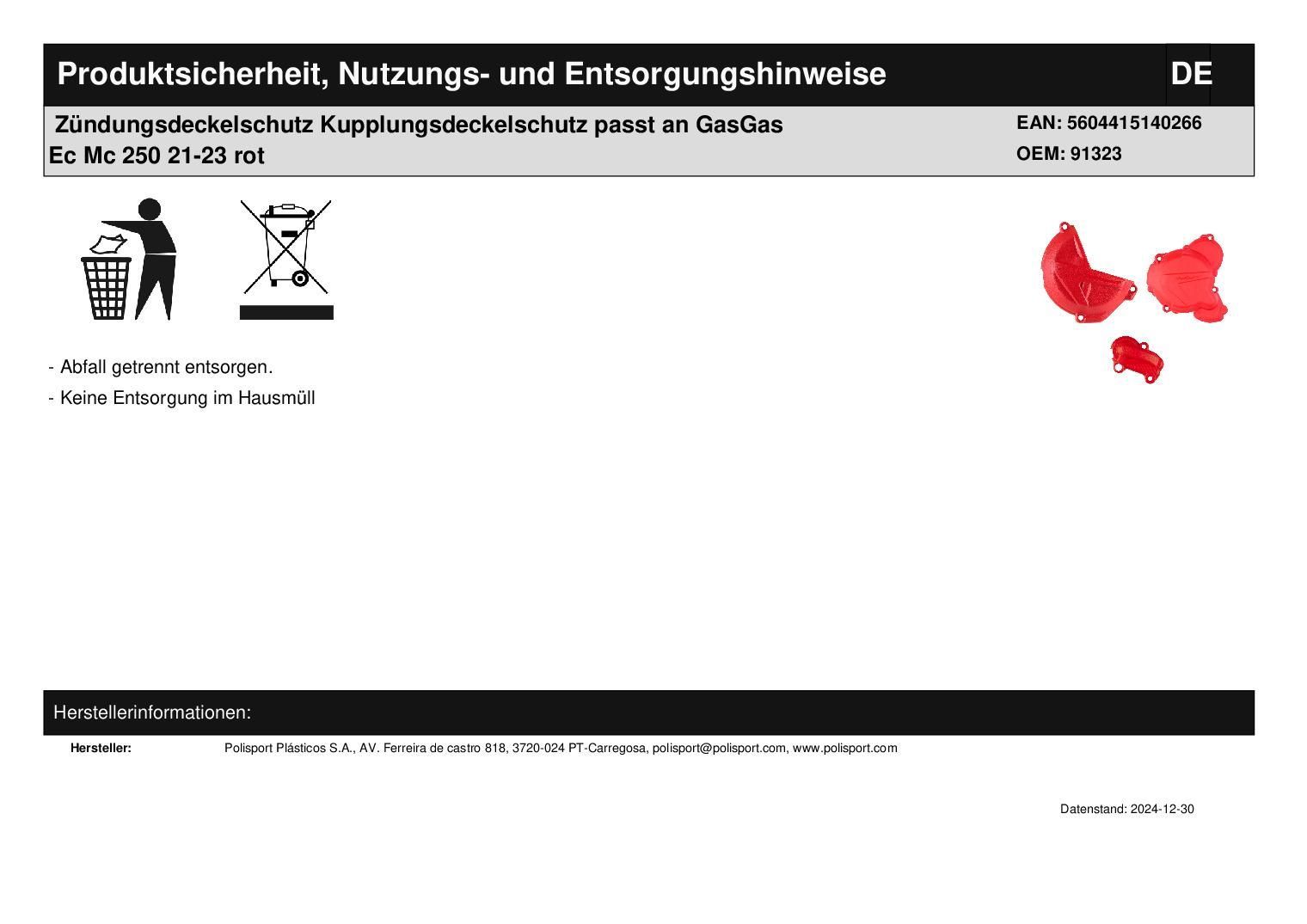Polisport Zündungsdeckelschutz Kupplungsdeckelschutz passt an GasGas Ec Mc 250 21-23 rot