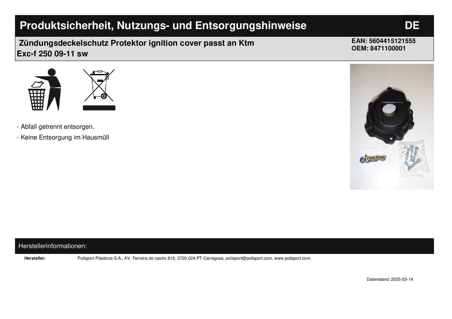 Polisport Zündungsdeckelschutz Protektor ignition cover passt an Ktm Exc-f 250 09-11 sw