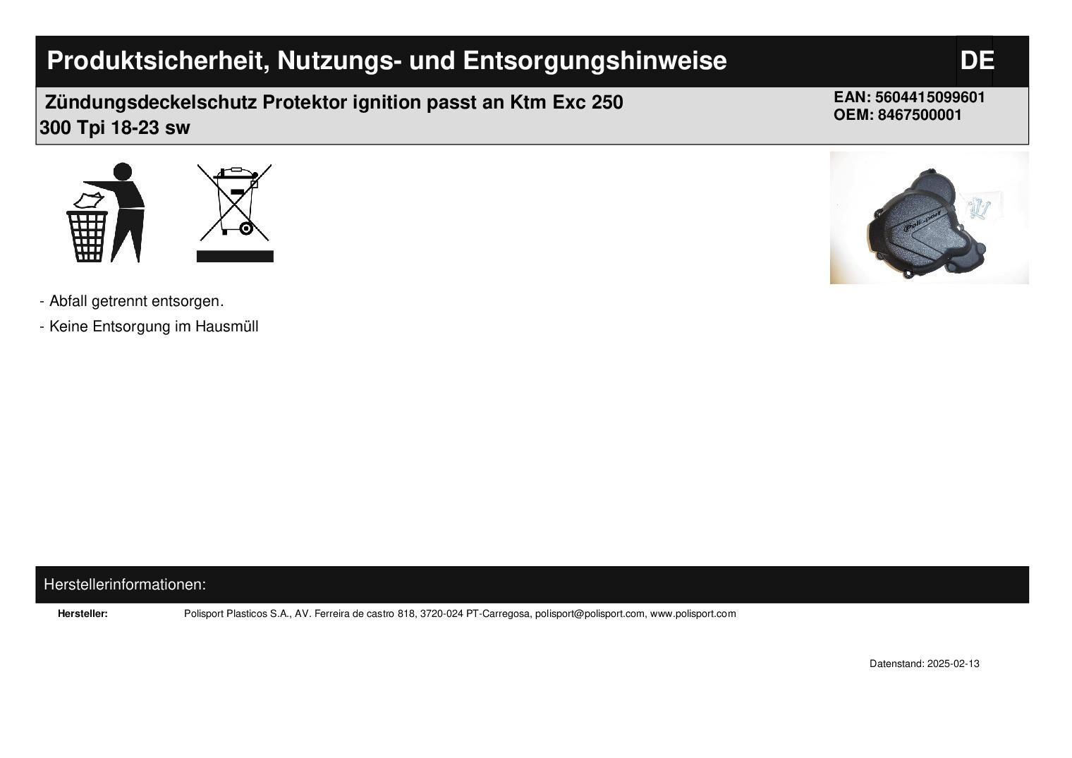Polisport Zündungsdeckelschutz Protektor ignition passt an Ktm Exc 250 300 Tpi 18-23 sw