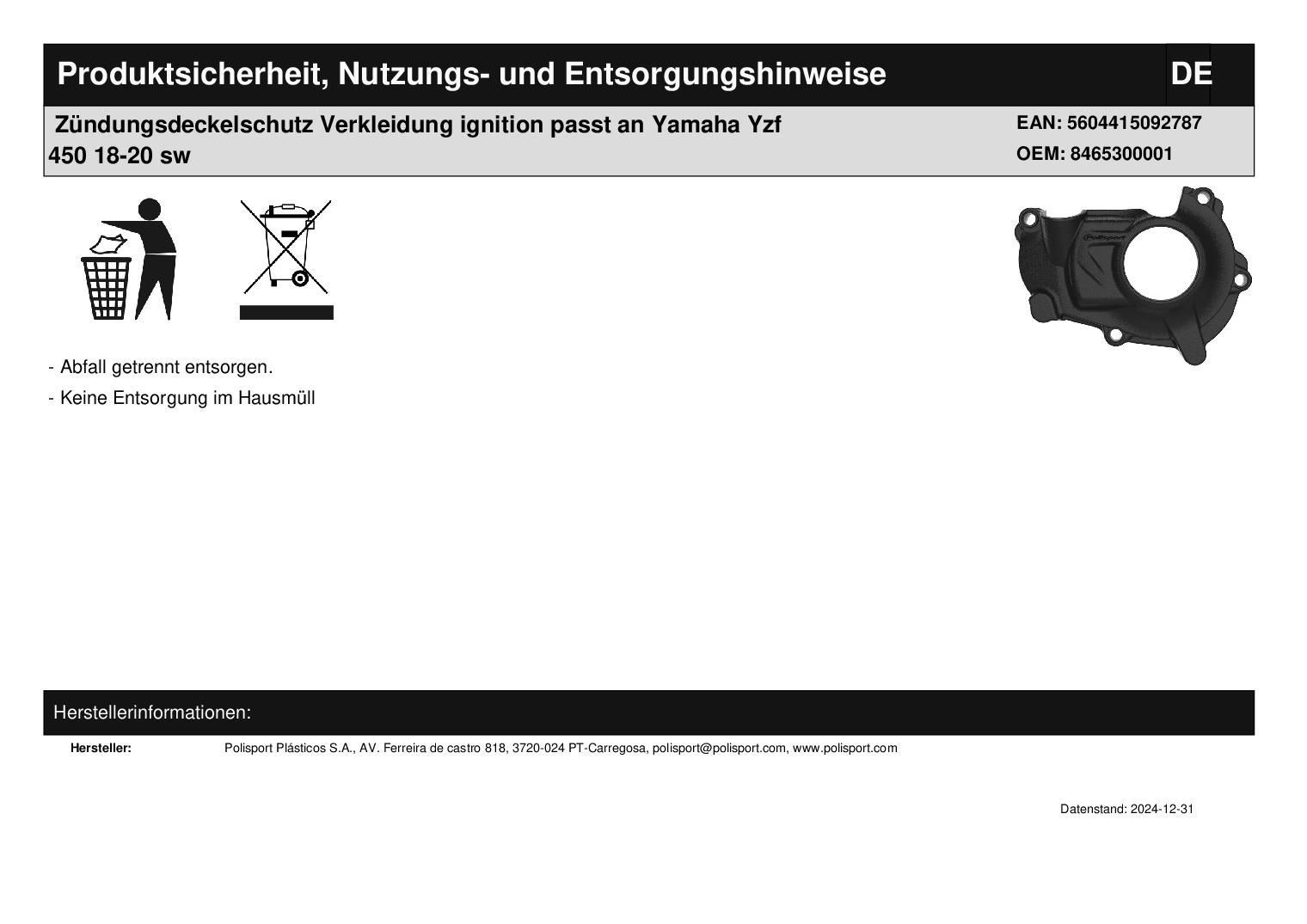 Polisport Zündungsdeckelschutz Verkleidung ignition passt an Yamaha Yzf 450 18-20 sw