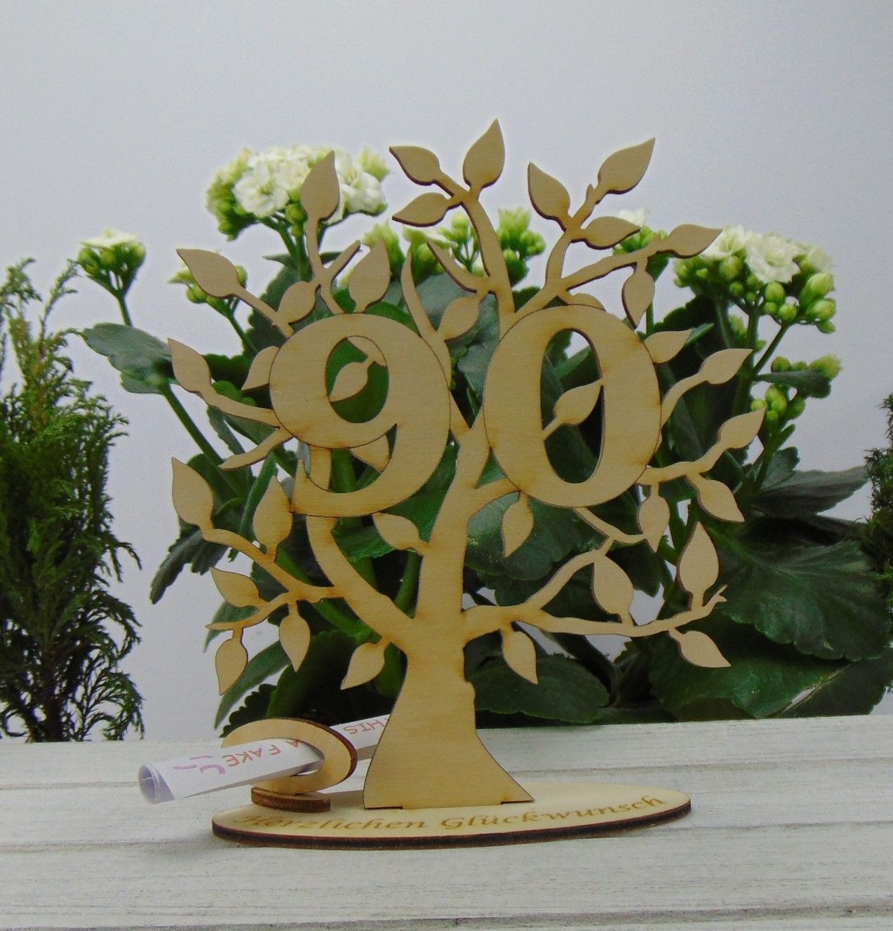 Zum 135 Geburtstag Lebensbaum aus Holz Tischdekoration Geldgeschenk Gutscheingeschenk