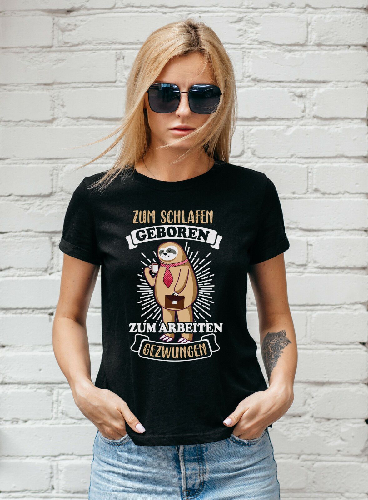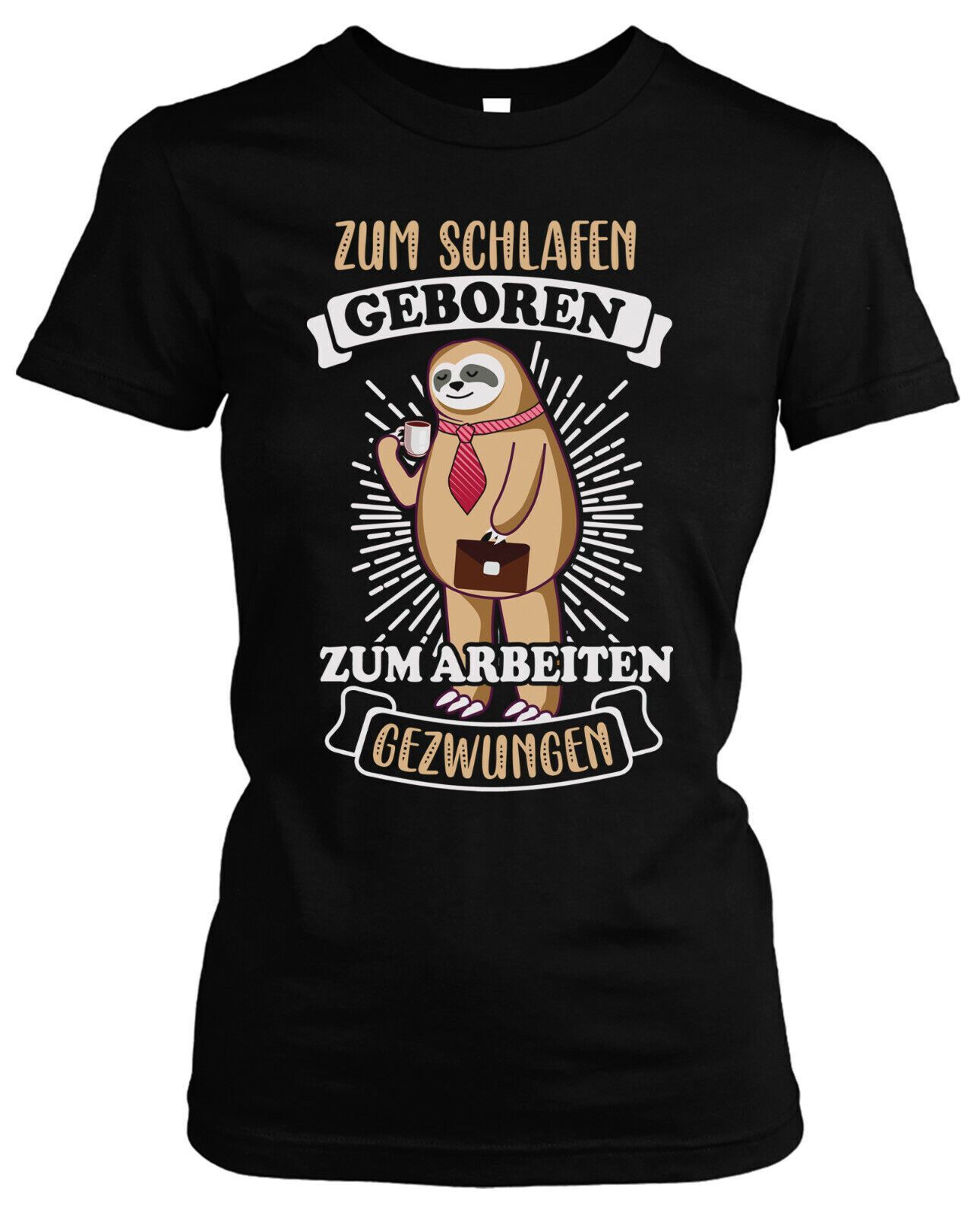 Zum Schlafen geboren Damen T-Shirt | Faultier Girlie Arbeit Büro Homeoffice| M1