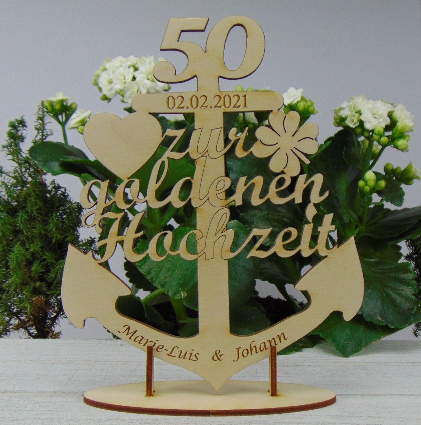 Zur Goldenen Hochzeit, Anker aus Holz, Personalisiert mit Unterplatte Tischdeko