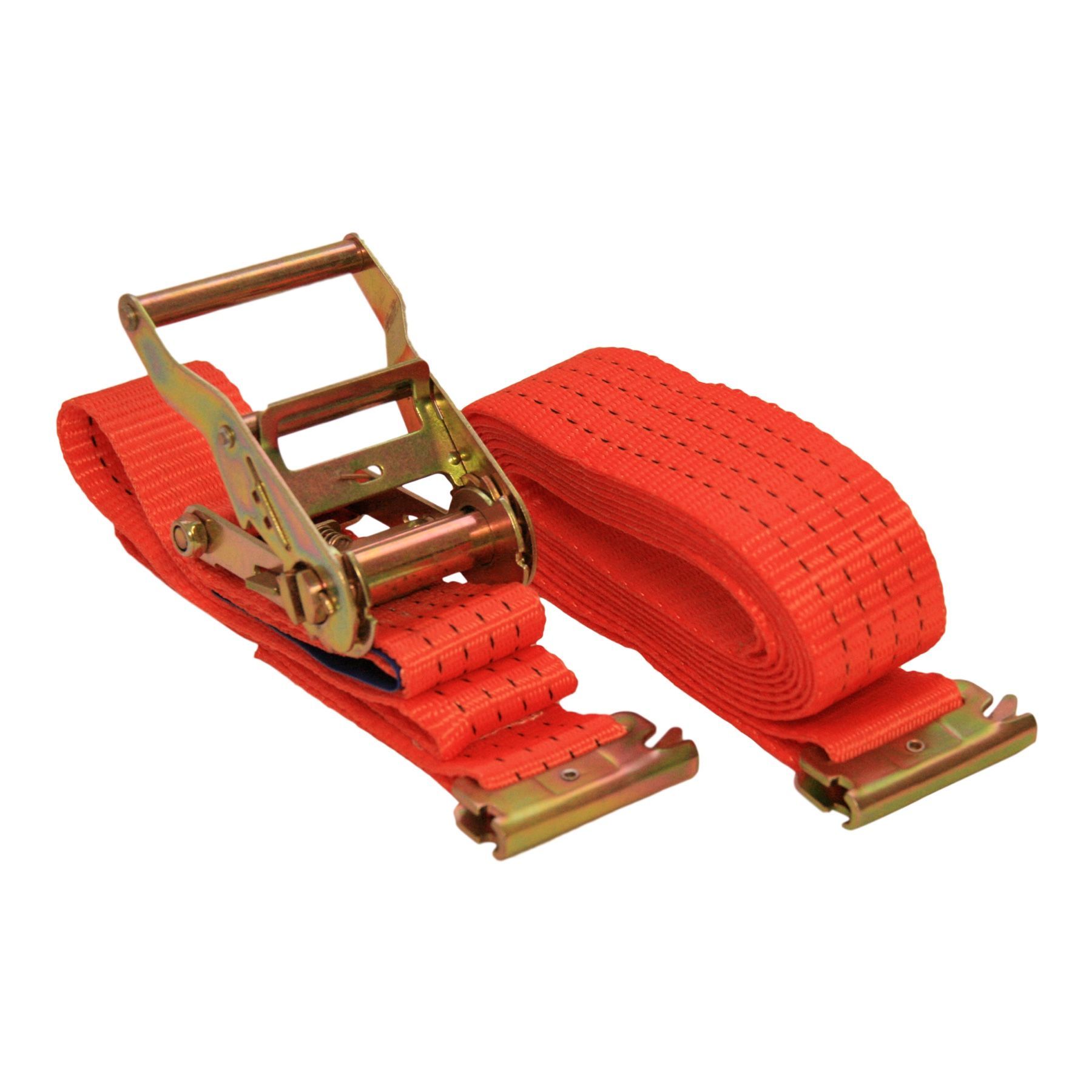 Zurrgurt zweiteilig mit Ratsche, Endbeschlag für Kombi- Ankerschienen Gewebebreite 50 mm Länge 5000 mm (Festende 500 mm Losende 4500 mm) Im geraden Zug 1000 daN Bei Umreifung 2000 daN Normale Handkraft 50 daN Normale Spannkraft 150 daN