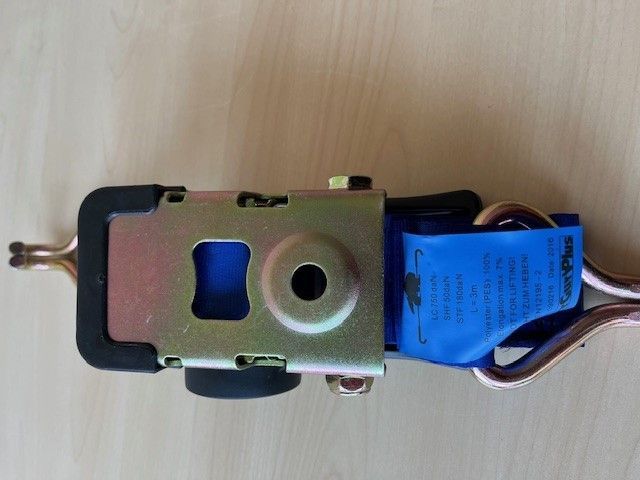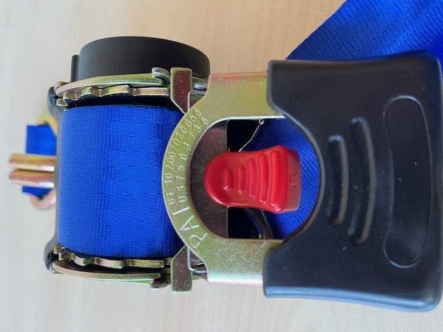 ZurrgurtPlus Artikel RJT 09.05, Länge 3 Meter, blau, Zugkraft : LC = 750 da N selbstaufrollender Spanngurt mit automatischer Rückholfunktion gefertigt nach DIN EN - 12195-2 , zugelassen für Ladungssicherung ( z. B. PKW, Transporter, Motorradtransport )