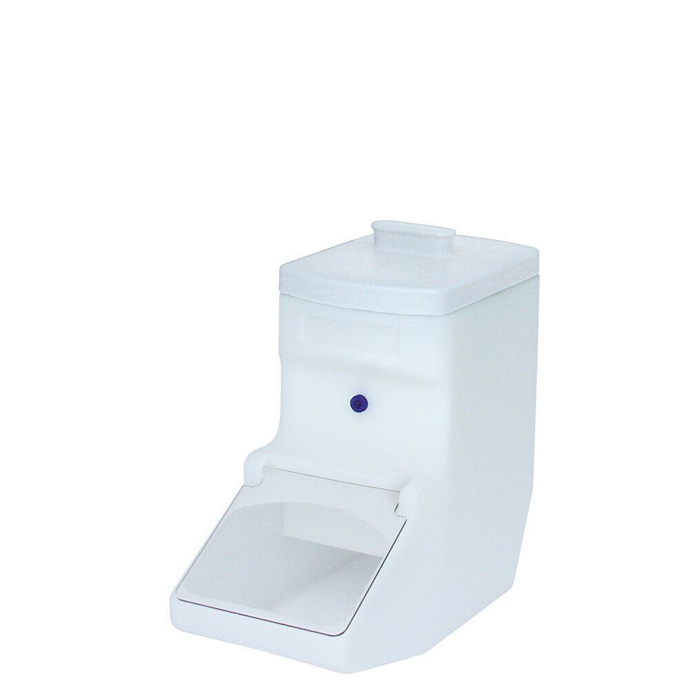 Stabiler Kunststoffbehälter aus hochwertigem Polyethylen-Kunststoff (PE-MD). Mit klappbarer Klarsicht-Schutzscheibe an der Entnahmeöffnung und einstellbarem Dosierschieber. Für Spülmaschinenreinigung geeignet. Inhalt 21 Liter LxBxH 475 x 205 x 470 mm Gewicht 2,4 kg Farbe weiß Zutatenspender, Zutaten