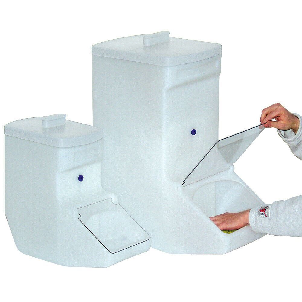 Stabiler Kunststoffbehälter aus hochwertigem Polyethylen-Kunststoff (PE-MD). Mit klappbarer Klarsicht-Schutzscheibe an der Entnahmeöffnung und einstellbarem Dosierschieber. Für Spülmaschinenreinigung geeignet Inhalt 61 Liter LxBxH 615 x 280 x 675 mm Gewicht 5,2 kg Farbe weiß Zutatenspender, Zutatenb