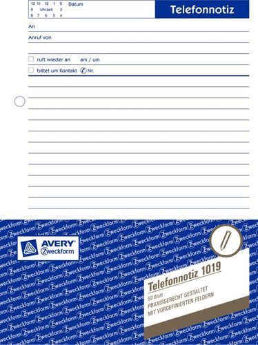Zweckform 1019 Telefonnotiz, DIN A5, vorgelocht, 50 Blatt, weiß