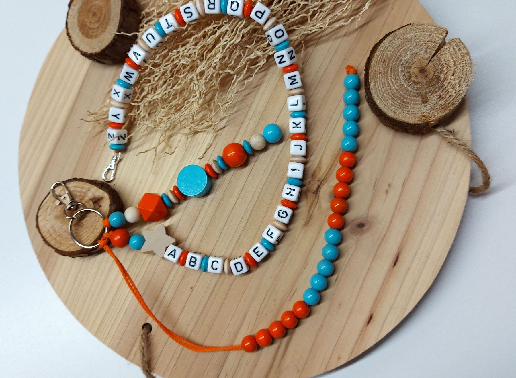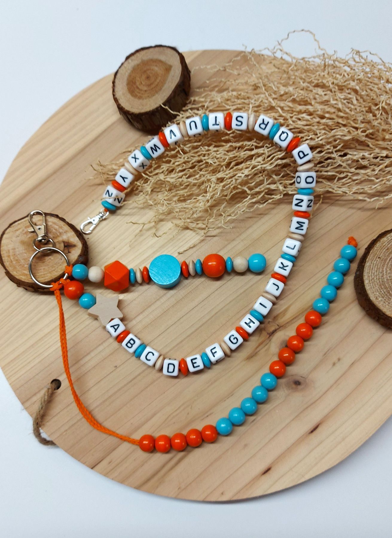 Zweckmäßige ABC- und Rechenketten für den Schulanfang - orange/türkis/natur matt