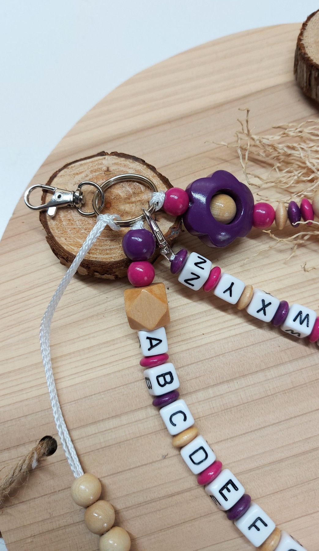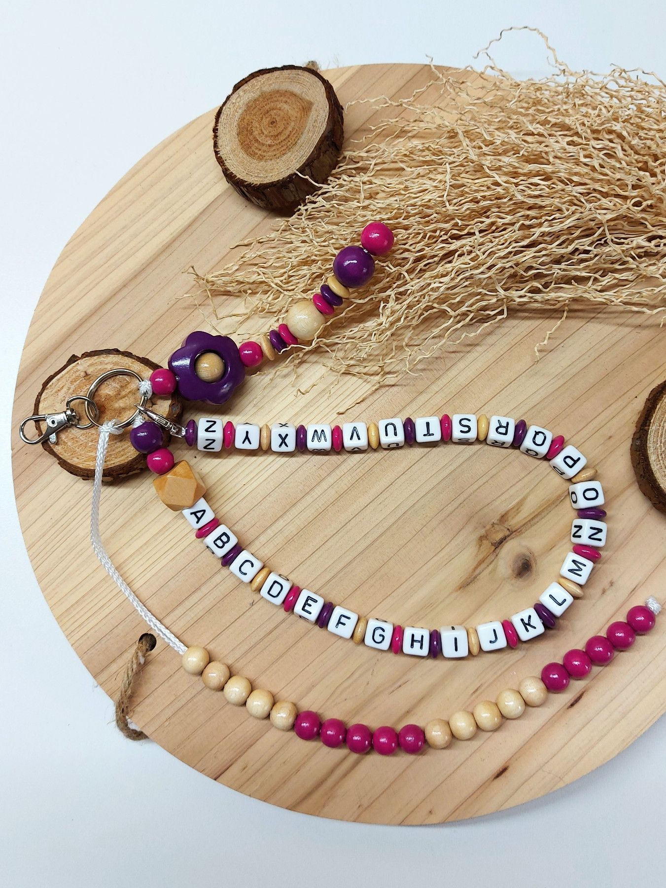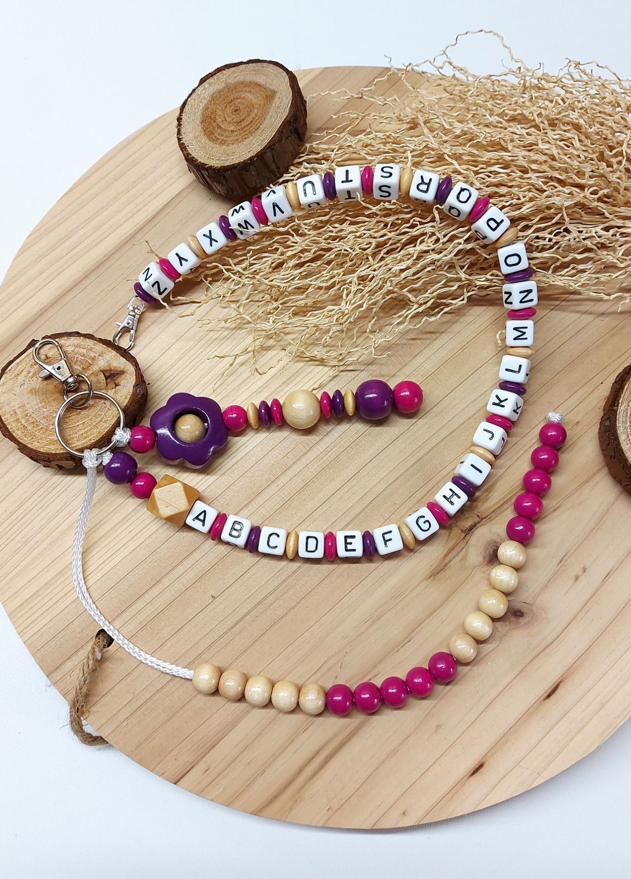 Zweckmäßige ABC- und Rechenketten für den Schulanfang - pink/natur glanz/beere