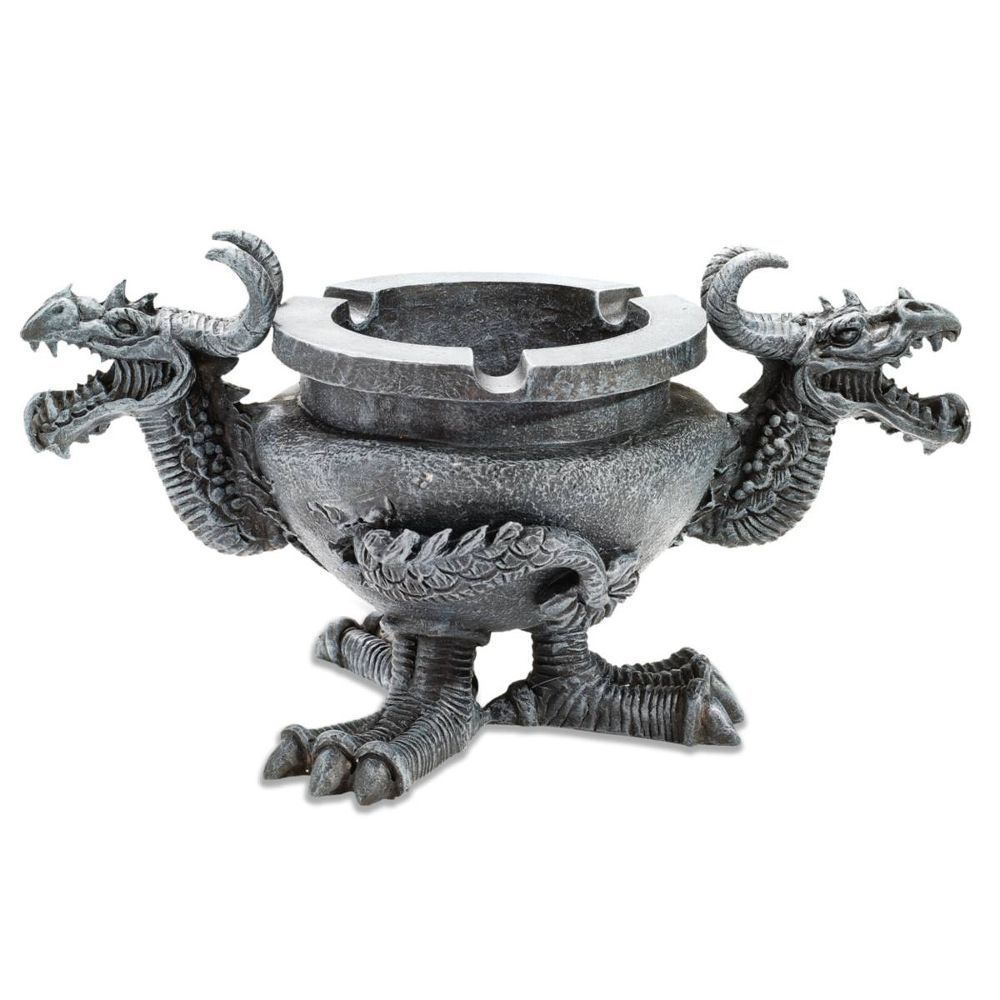 Zwei Drachenköpfe als Aschenbecher 26cm (Gr. 26x12,5x13,5cm)