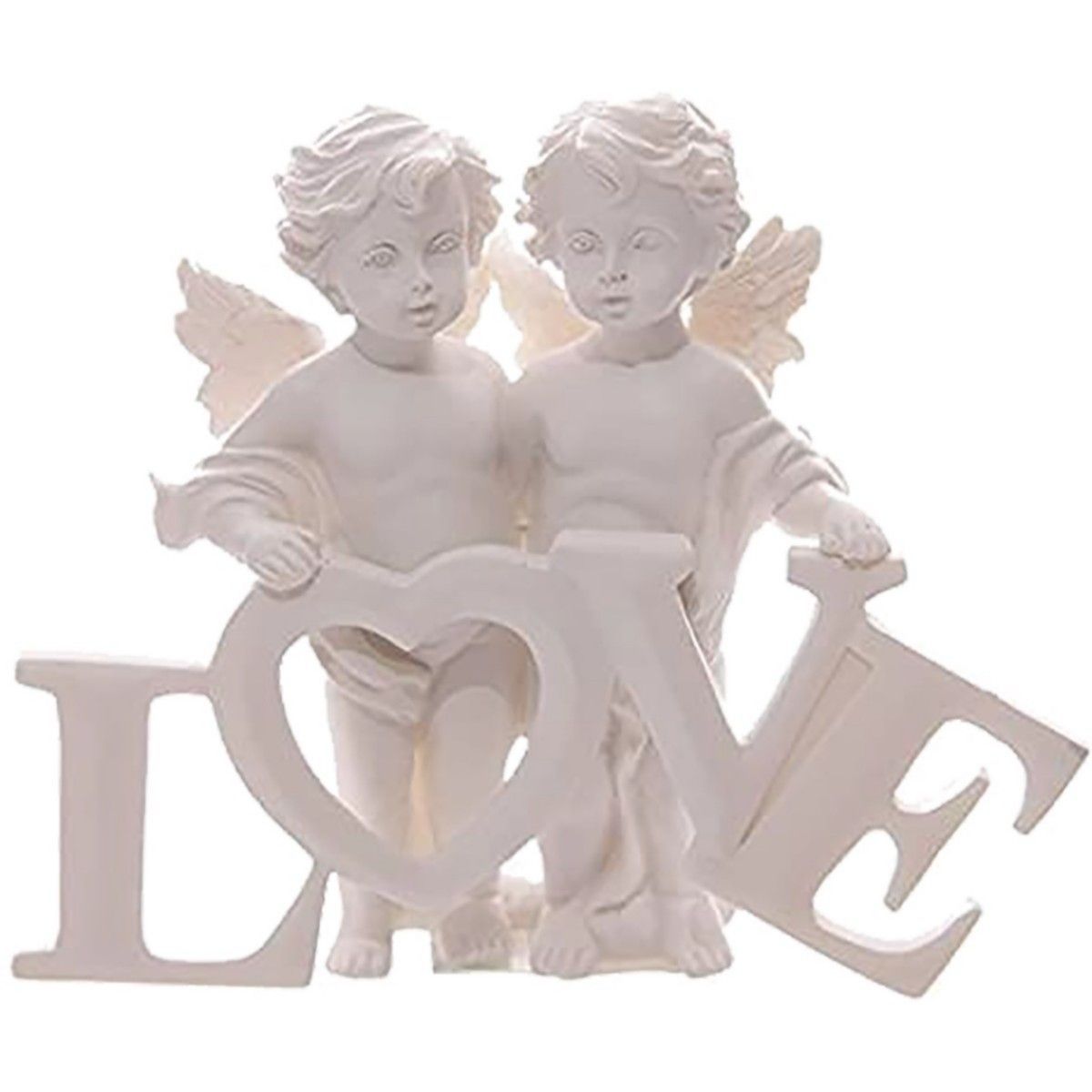 Zwei Engelchen halten LOVE Schriftzug fest