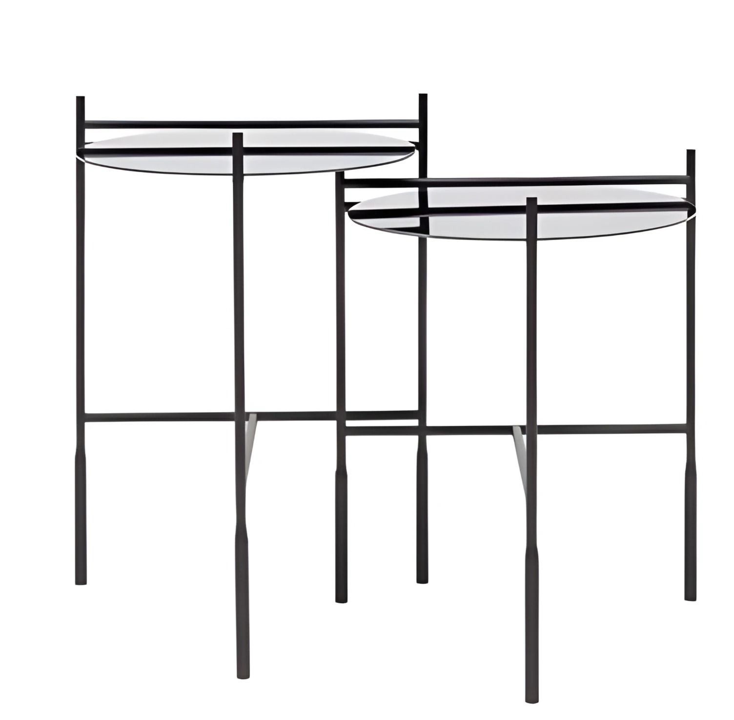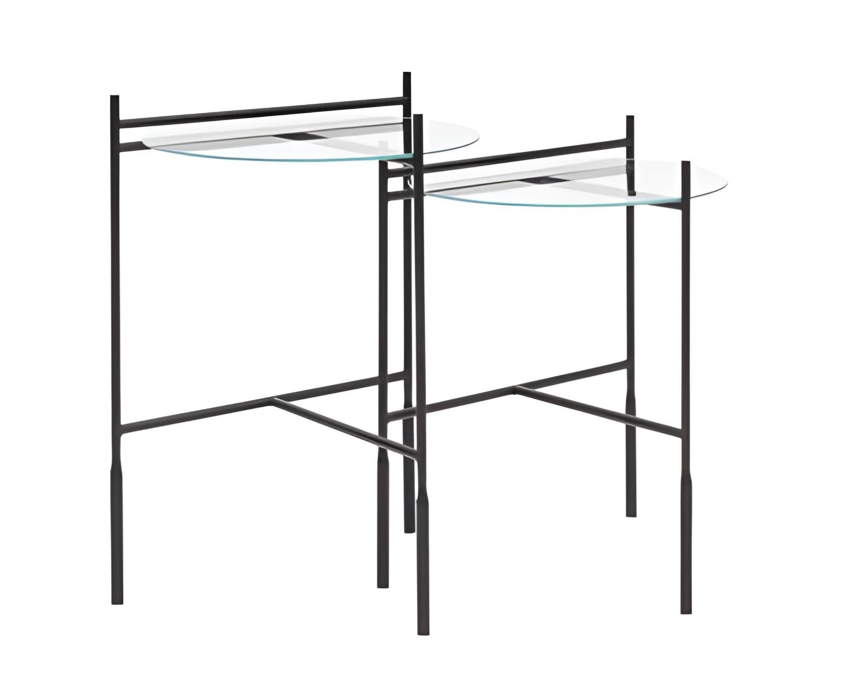 Zwei stilvolle Beistelltische Luxus Tisch Glastisch Blumenständer Metall