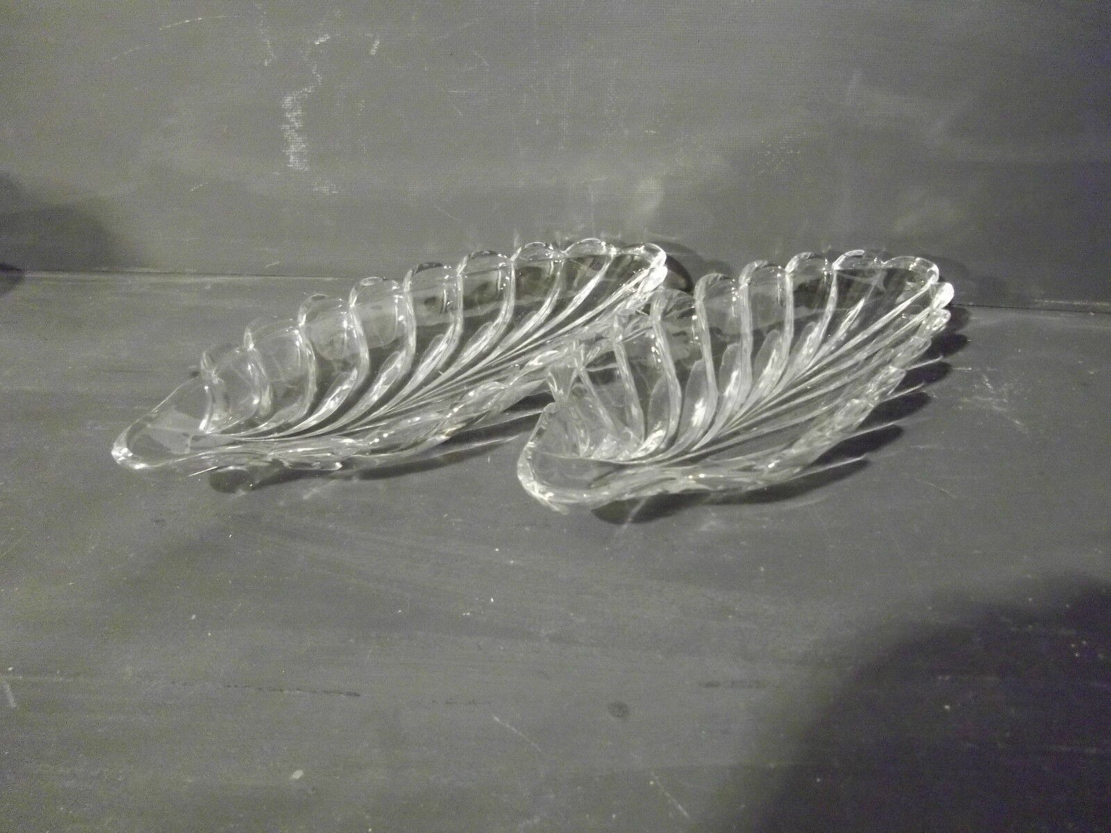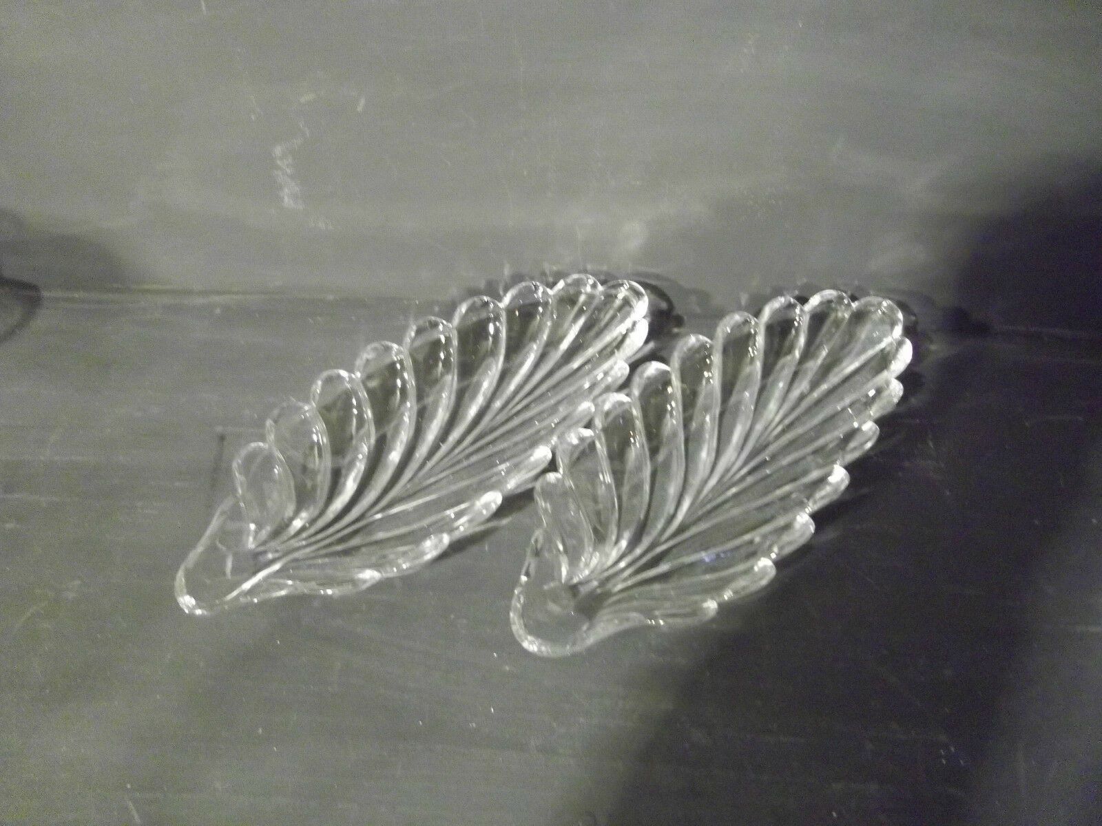 Zwei Vorlege-Platten in Blattform. um 1930. Material: Pressglas. Ohne Marke . Maße: L 28 cm. Antikes am Deich - Inh: Oliver Kipp-Trense G M T Sprache erkennen Afrikaans Albanisch Arabisch Armenisch Aserbaidschanisch Baskisch Bengalisch Bosnisch Bulgarisch Burmesisch Cebuano Chichewa Chinesisch (ver)