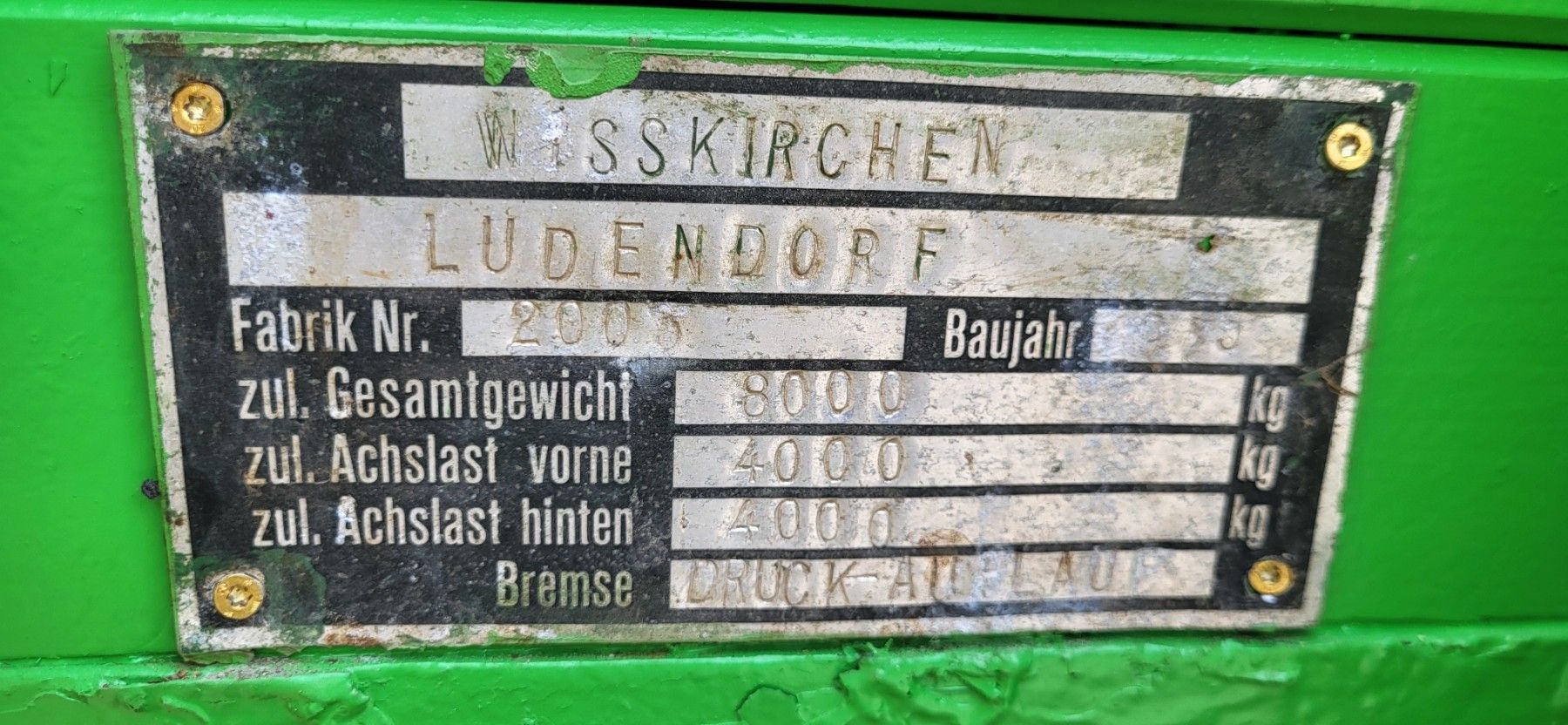 Zweiachsiger Anhänger, 8 t, Wißkirchen Ludendorf Zul. Gesamtgewicht: 8.000 kg