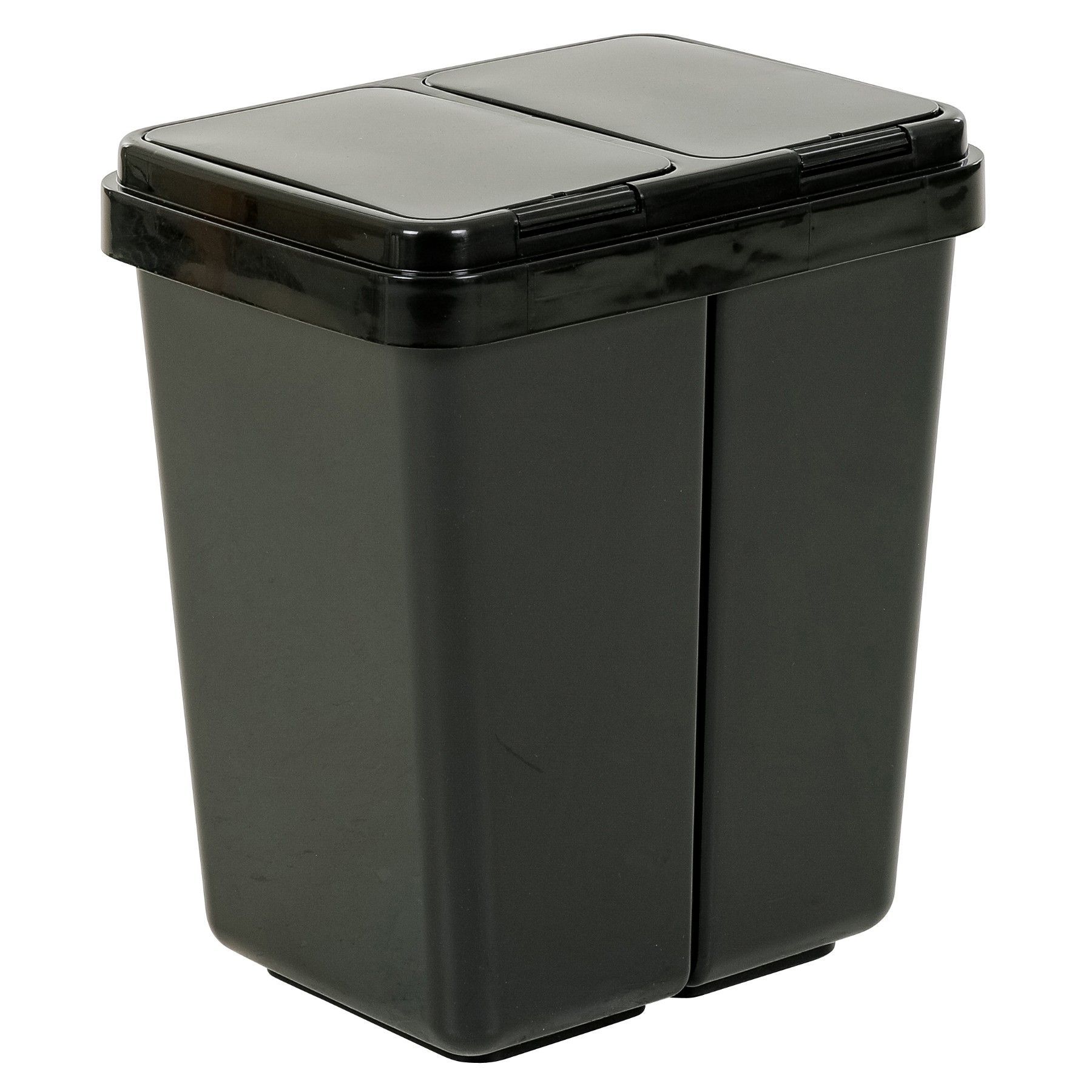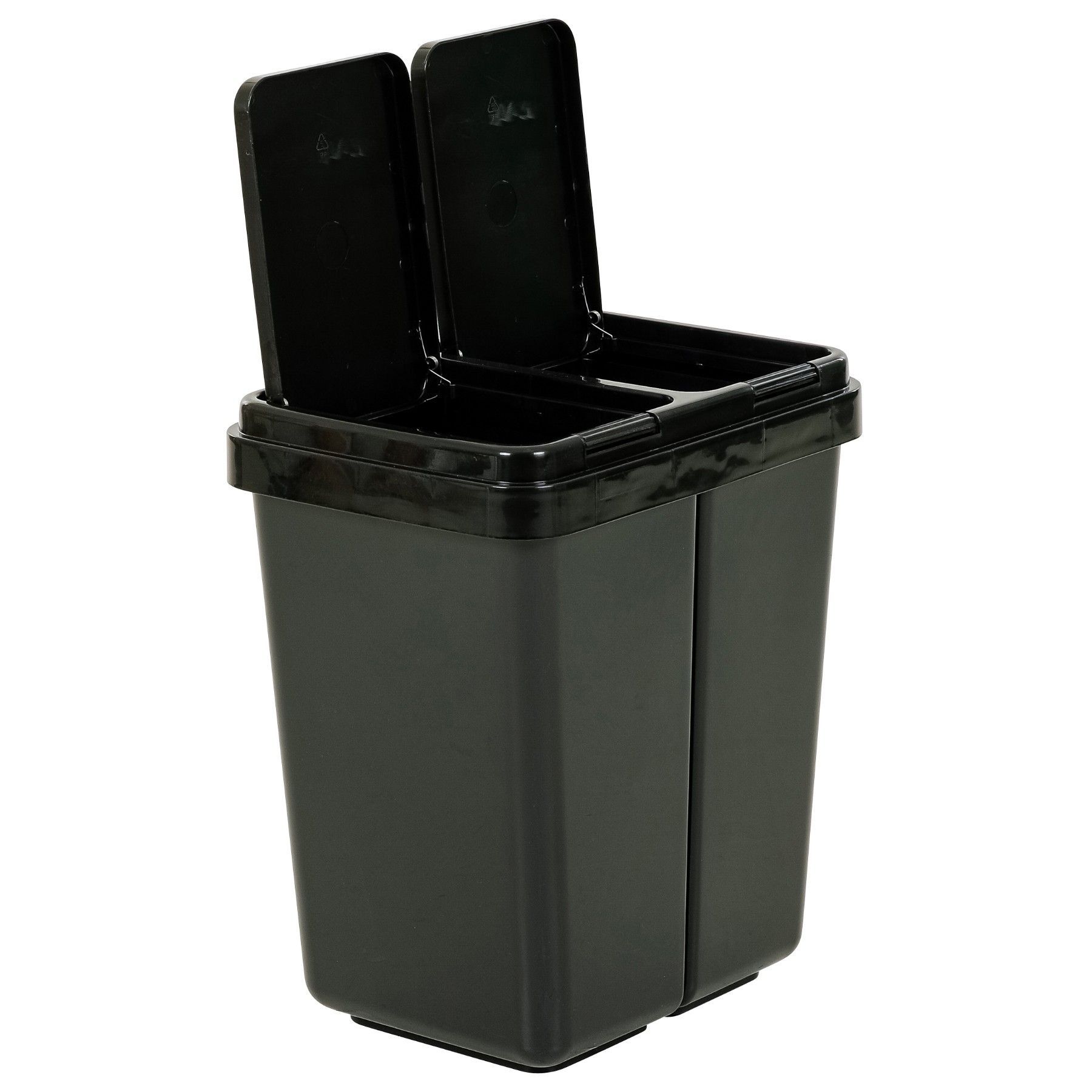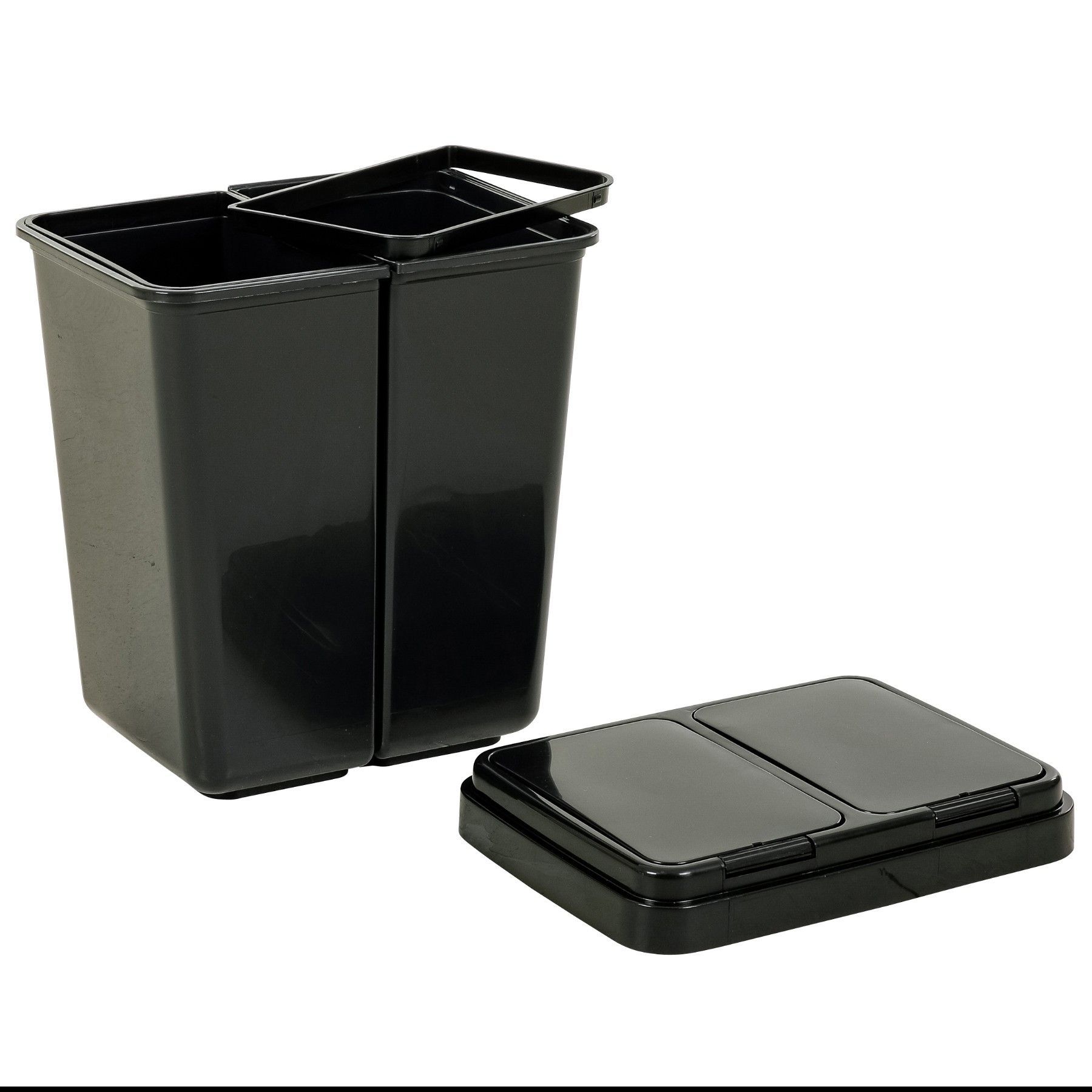 ZwEimer Müllbehälter 2 x 25 l schwarz, Duo Abfalleimer Mülltrennsystem